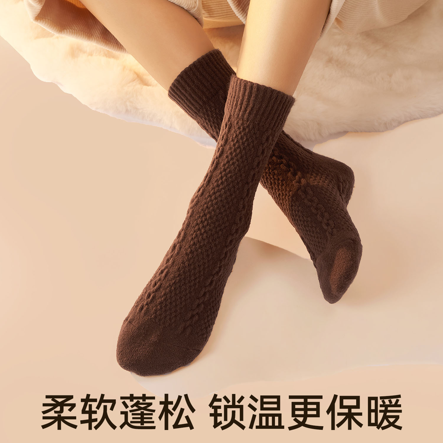 棉伙棉伴海藻袜舒适抗菌防臭男女商务运动纯色裸感中筒袜