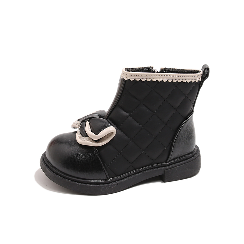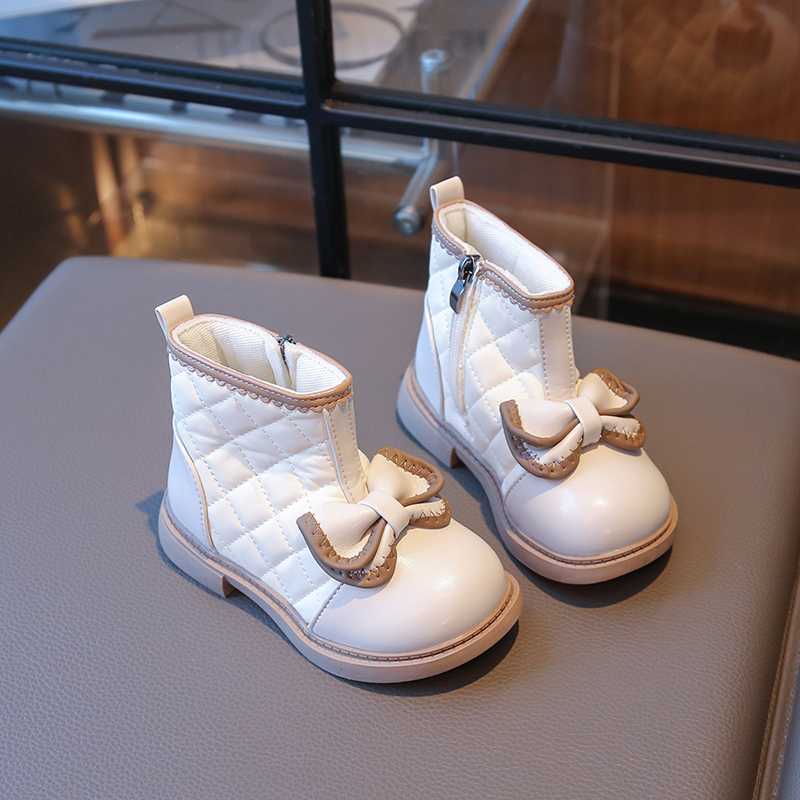 女童短靴2025秋冬新款 6岁3 蝴蝶结加绒马丁靴女孩公主保暖皮靴1