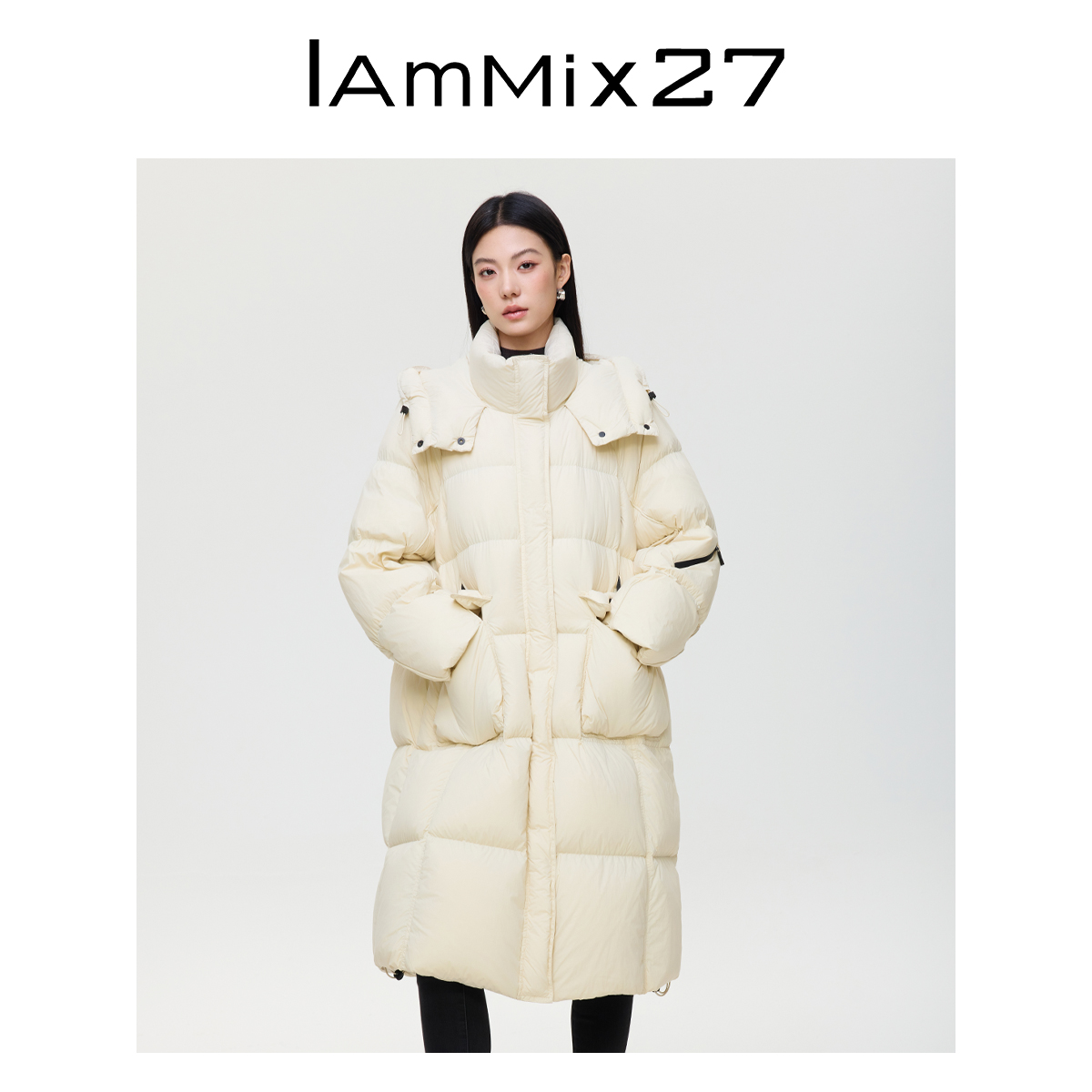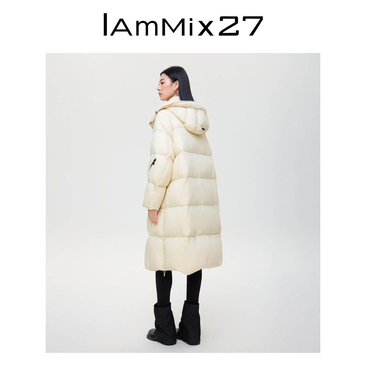 IAmMIX27冬季 蓬松加厚保暖大口袋90白鹅绒外套女 连帽鹅绒服女长款