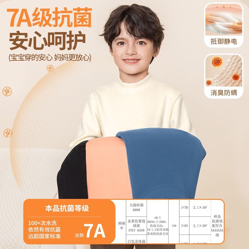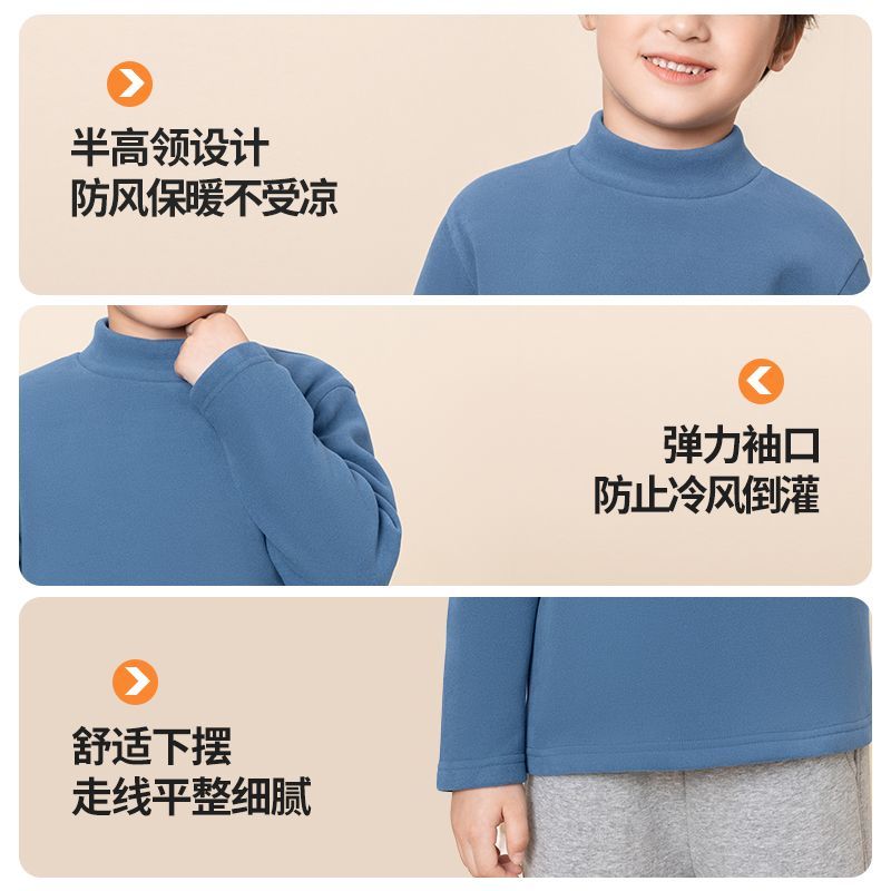 巴布豆男童打底衫 加绒t恤大童保暖上衣男孩内搭秋衣 儿童秋冬长袖