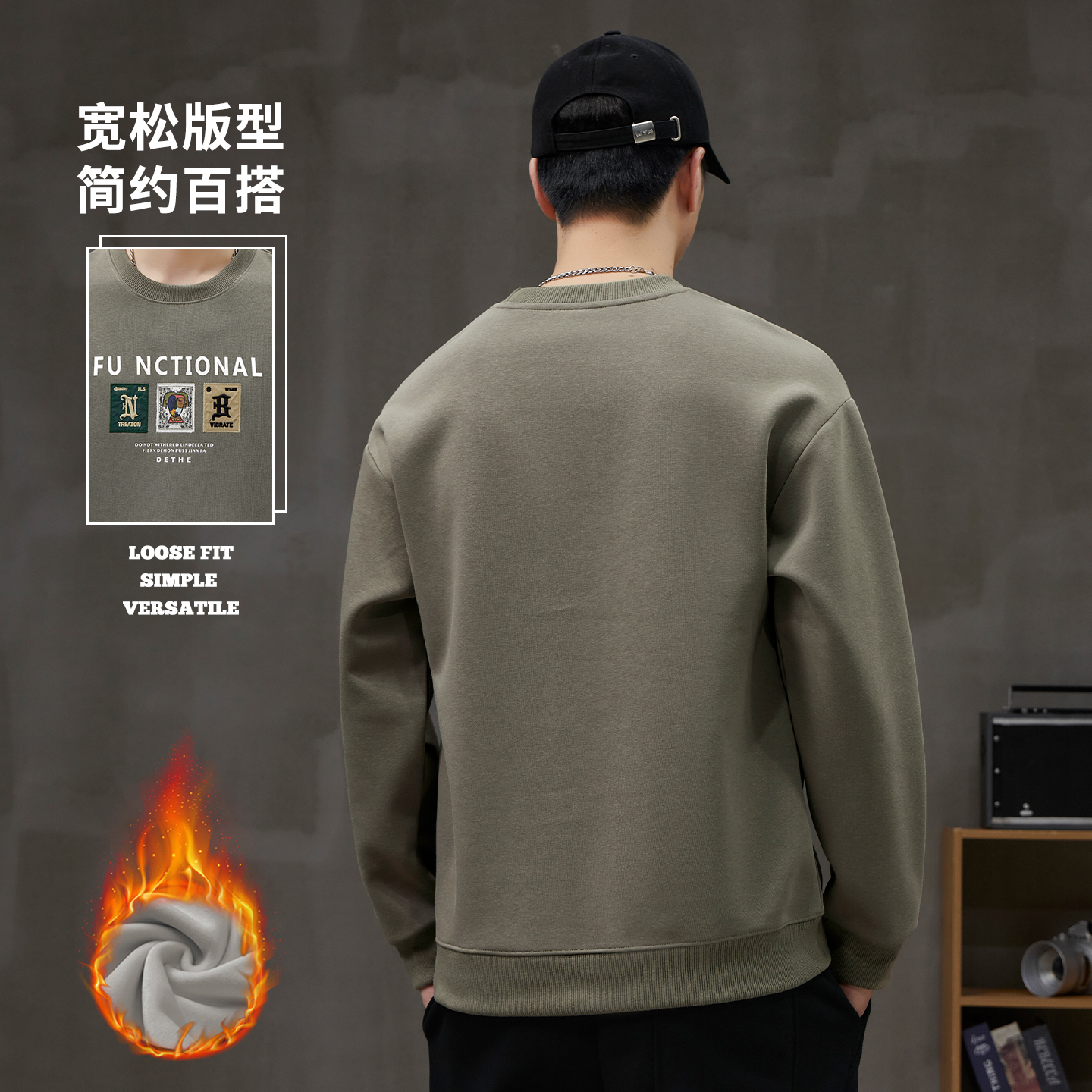 美式 男装 重磅圆领加绒卫衣男冬季 2025新款 打底内搭上衣情侣装 男士
