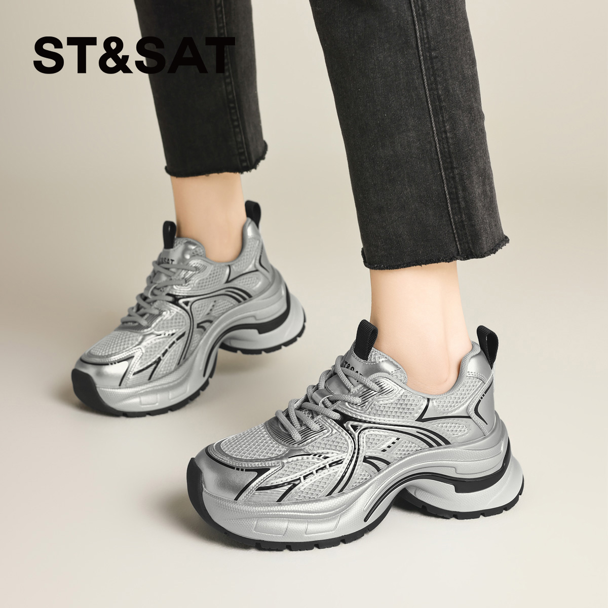 百丽星河轨迹老爹鞋 休闲厚底运动鞋 女鞋 增高鞋 预 新款 张凌赫同款