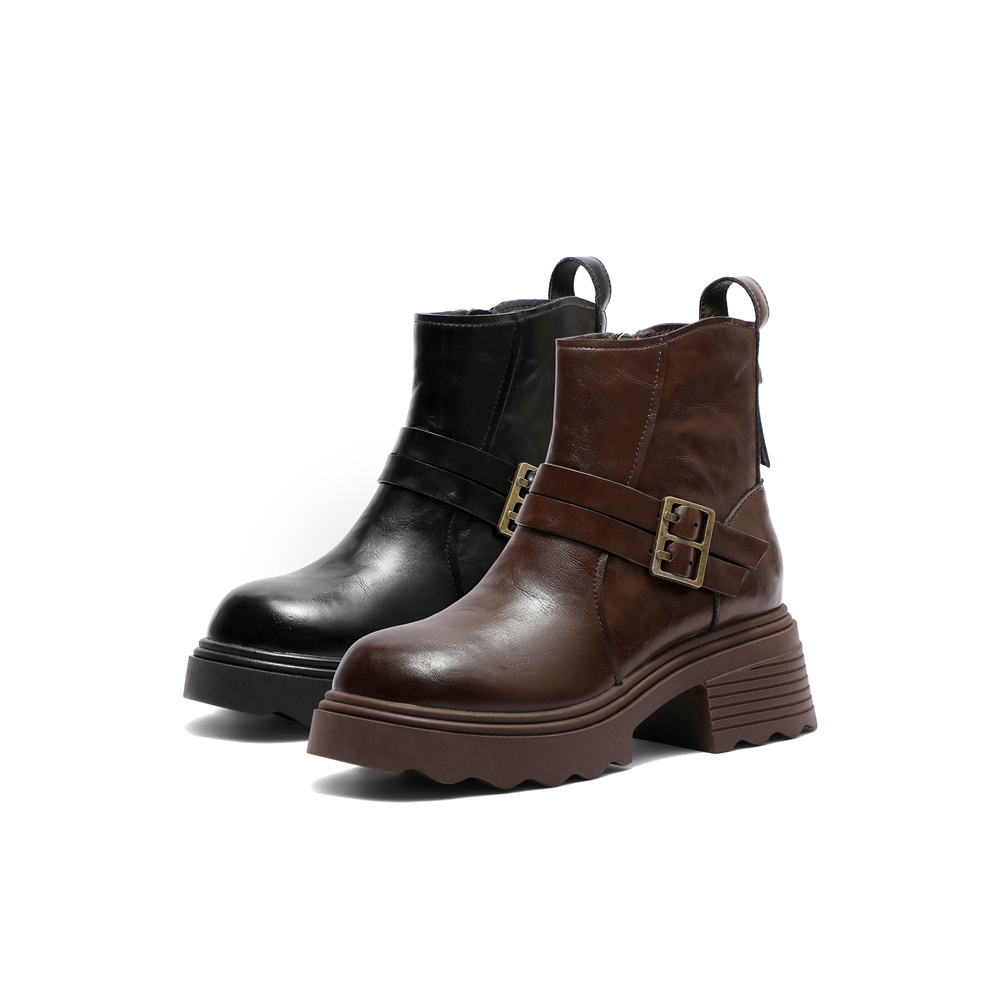 森达时装 靴女2025冬新皮带扣厚底粗跟潮流短靴ZTI04DD5