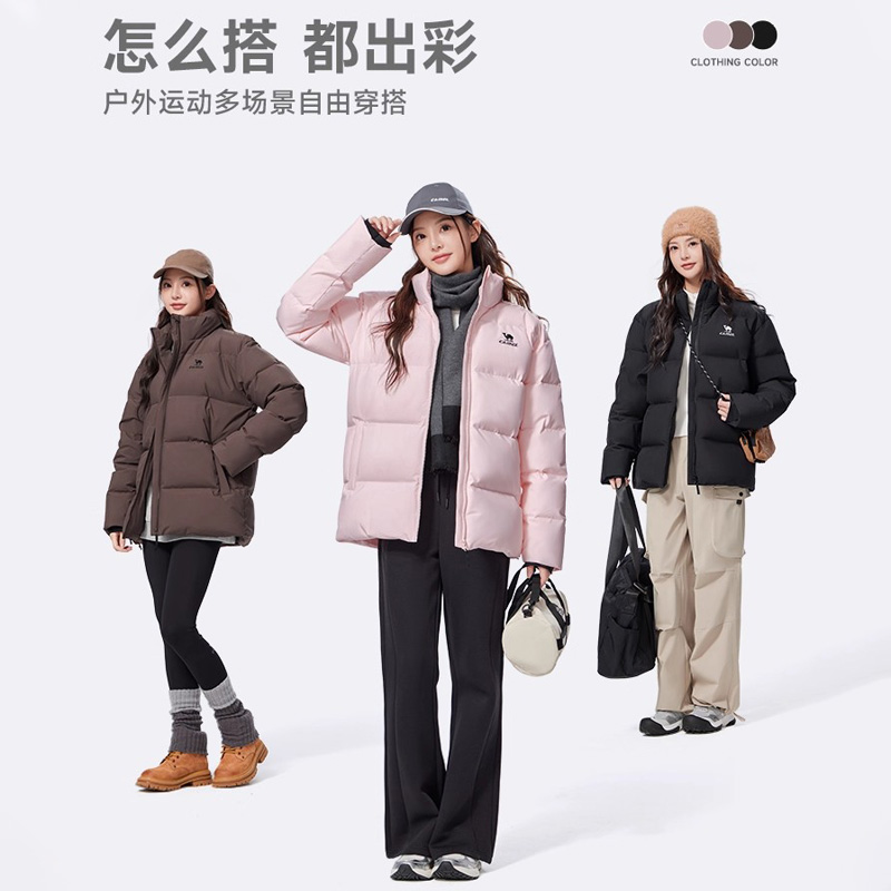 骆驼运动羽绒服女2025冬季 情侣面包服户外防泼水加厚短外套男 新款
