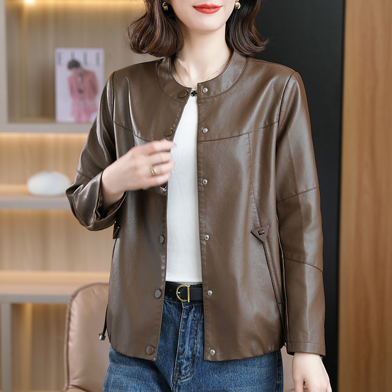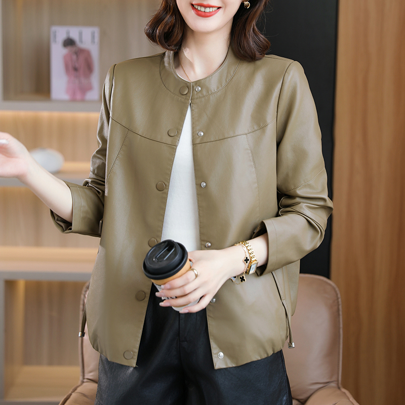 韩版 新款 皮衣外套女短款 装 显瘦立领机车水洗软皮夹克上衣 2025秋季