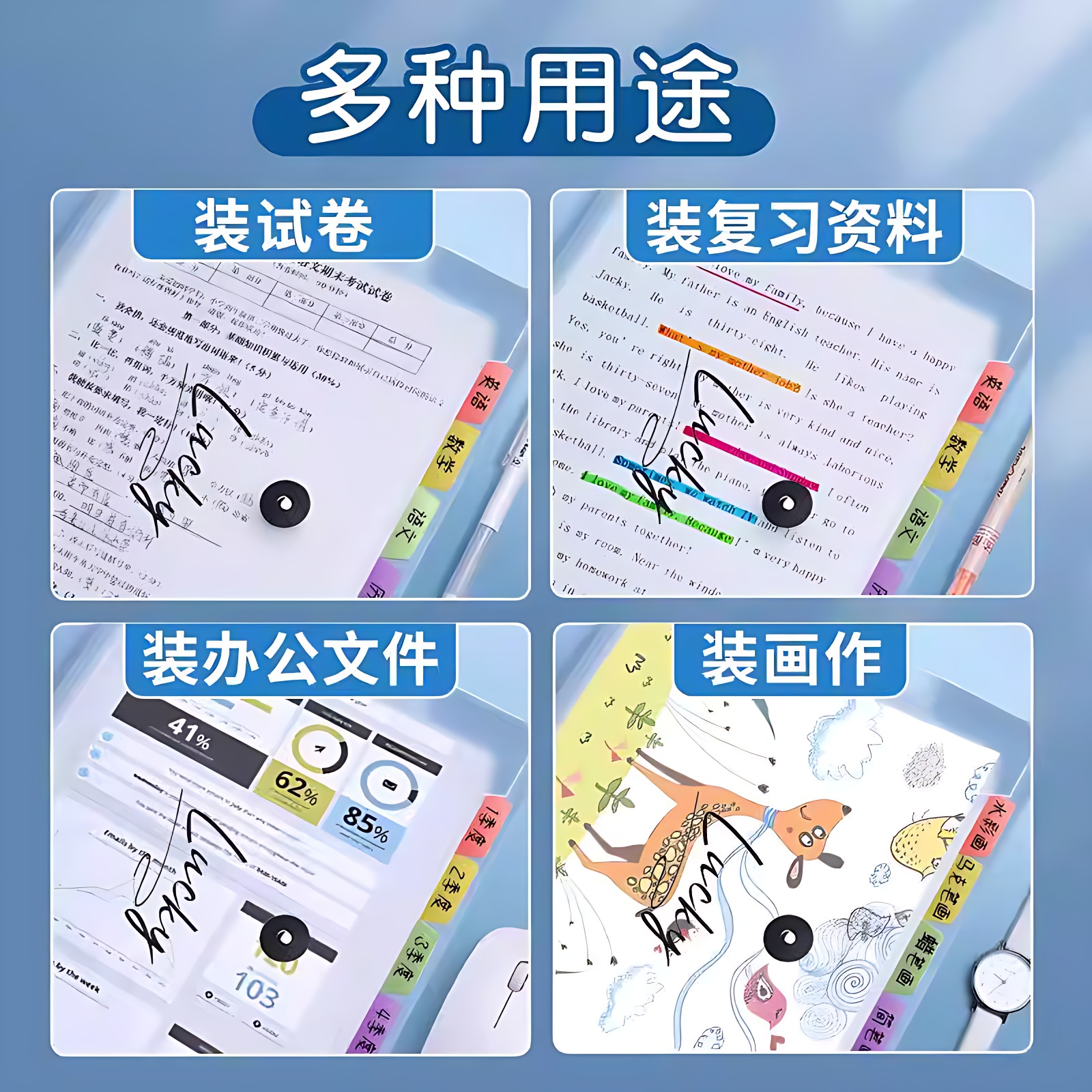 A4竖式 L型大开口网纱透明拉链手提文件袋补习袋科目袋学科袋13层学生风琴包分类试卷收纳夹多层资料册事务包