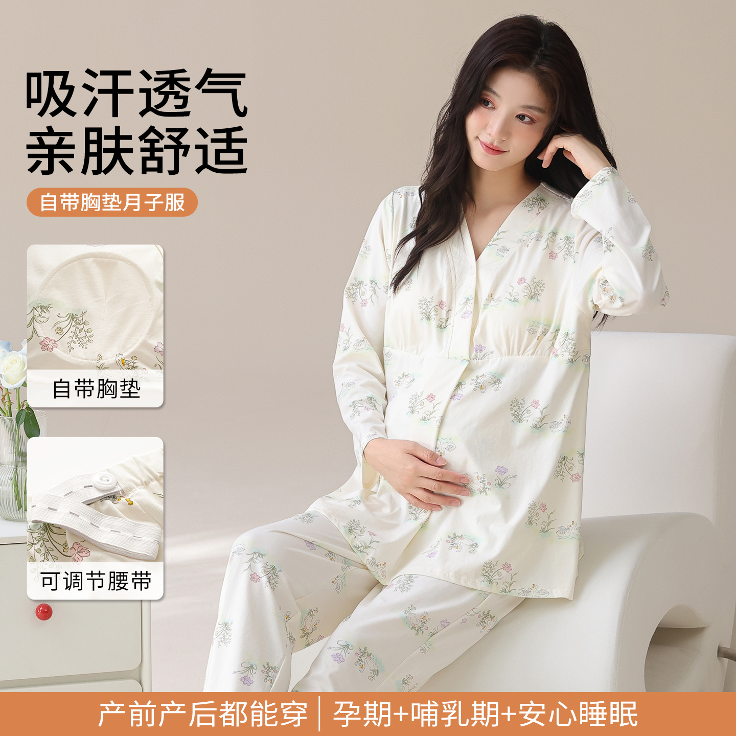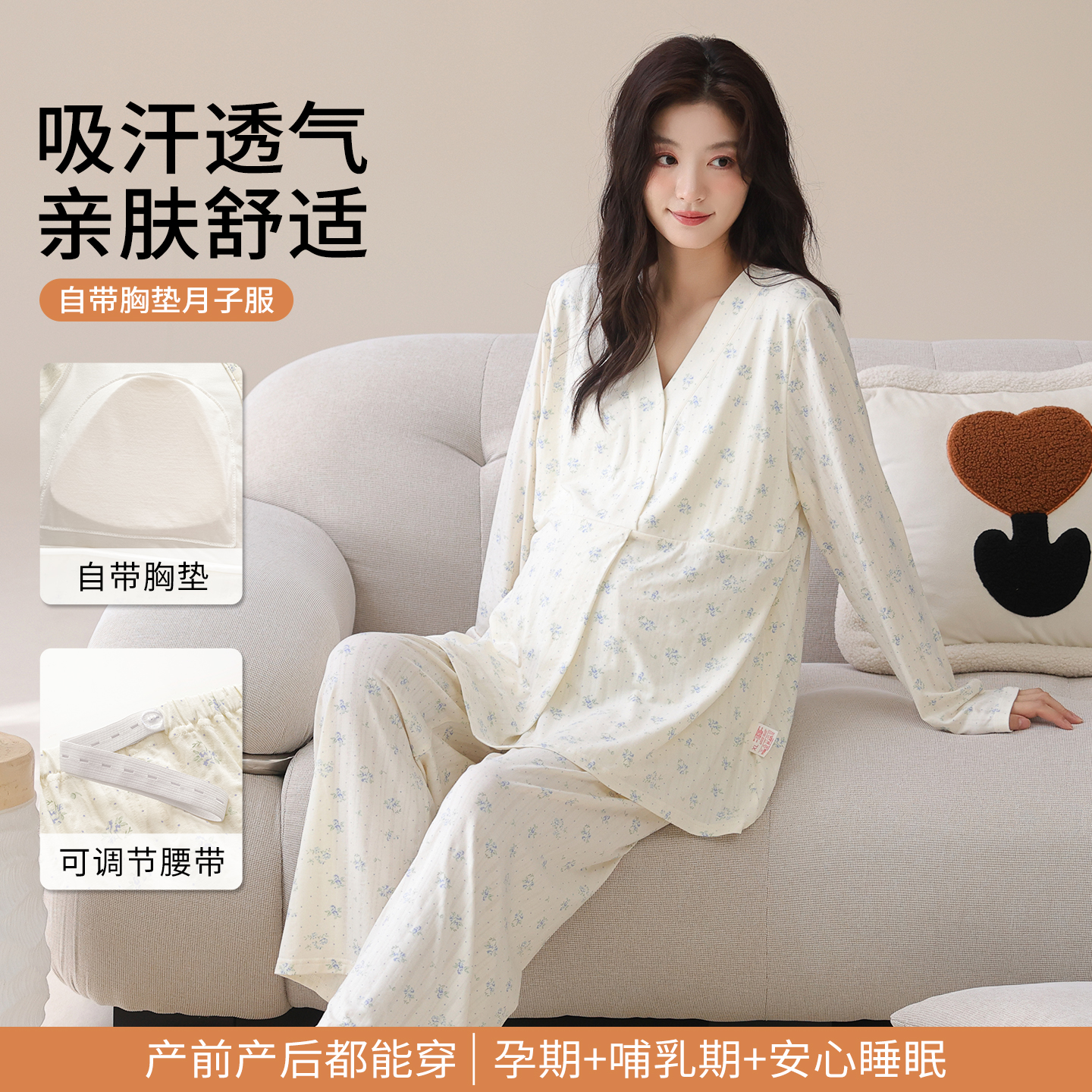 短袖 纯棉2025春夏新款 家居服女士带胸垫 女款 休闲风凉感棉睡衣套装