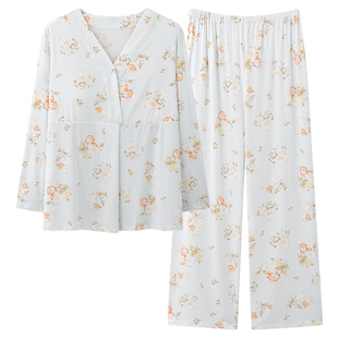 时尚 柔软莫代尔棉大码 开衫 套装 家居服 长袖 贝妍高级感睡衣女春秋季