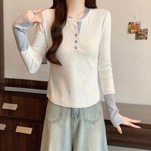 气质1007k 胖mm韩版 秋冬打底内搭半开领撞色假两件修身 上衣女大码