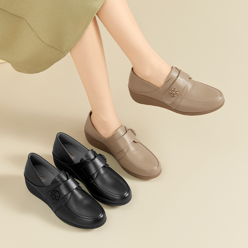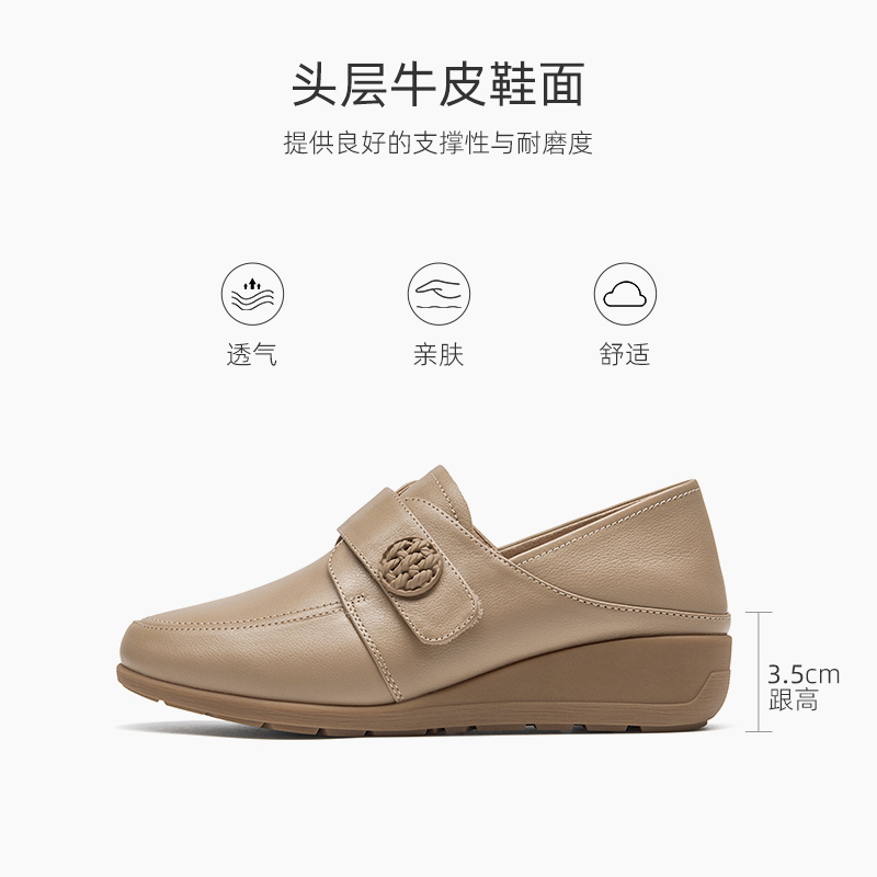 双11预售 真皮舒适百搭妈妈鞋 坡跟深口单鞋 新款 皮鞋 女2025秋季