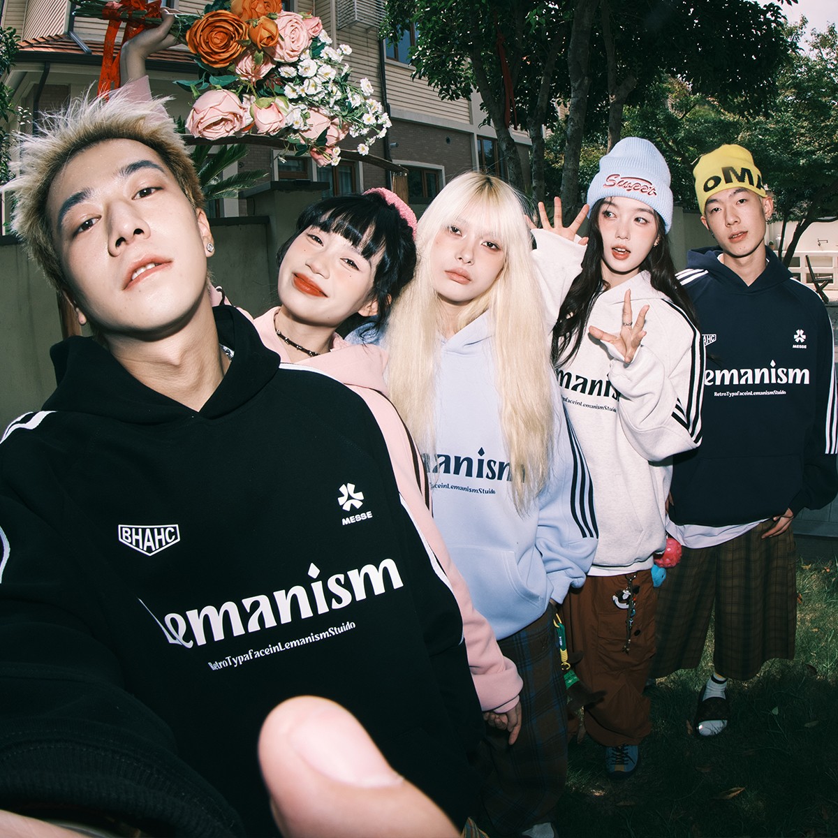 情侣高街外套女 2025春季 lemanism美式 潮牌三条杠粉色连帽卫衣男款