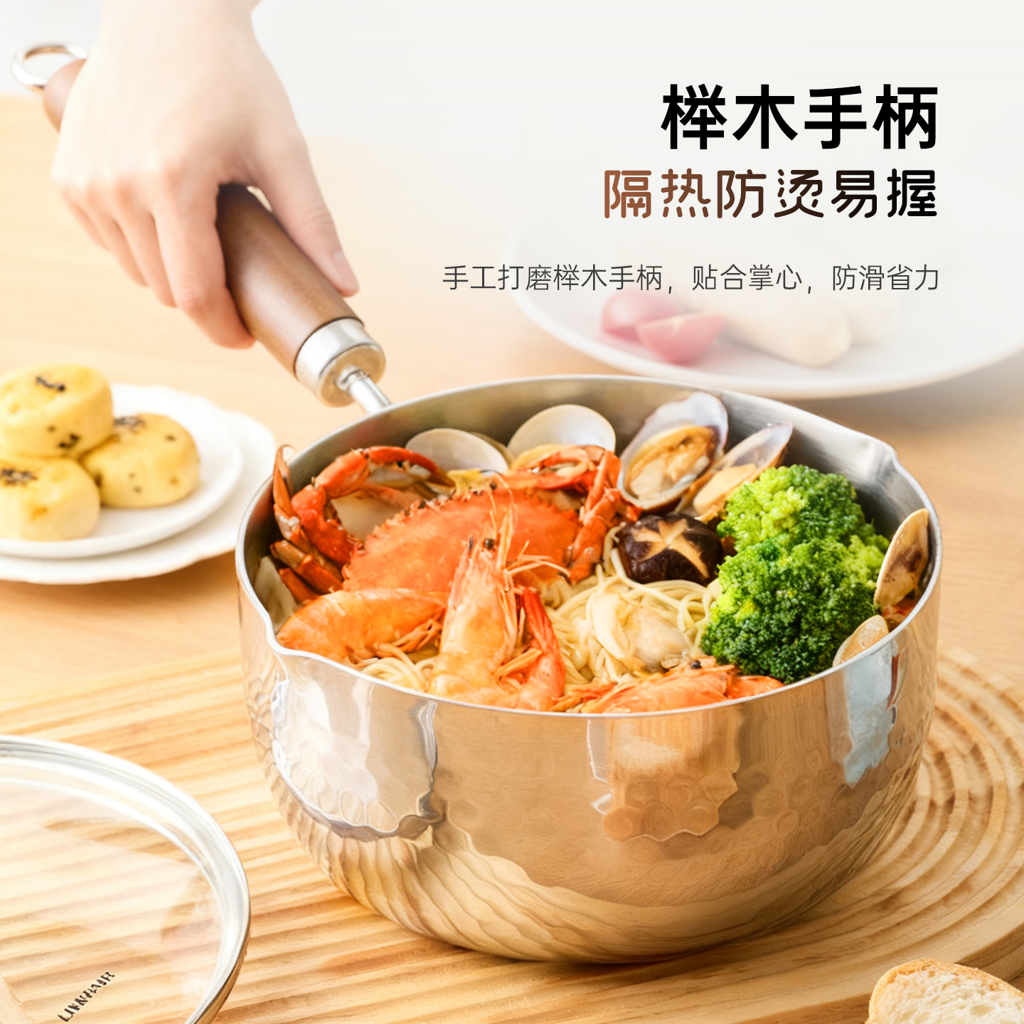 凌丰雪平锅无涂层304不锈钢奶锅小容量辅食锅宝宝小奶锅泡面锅