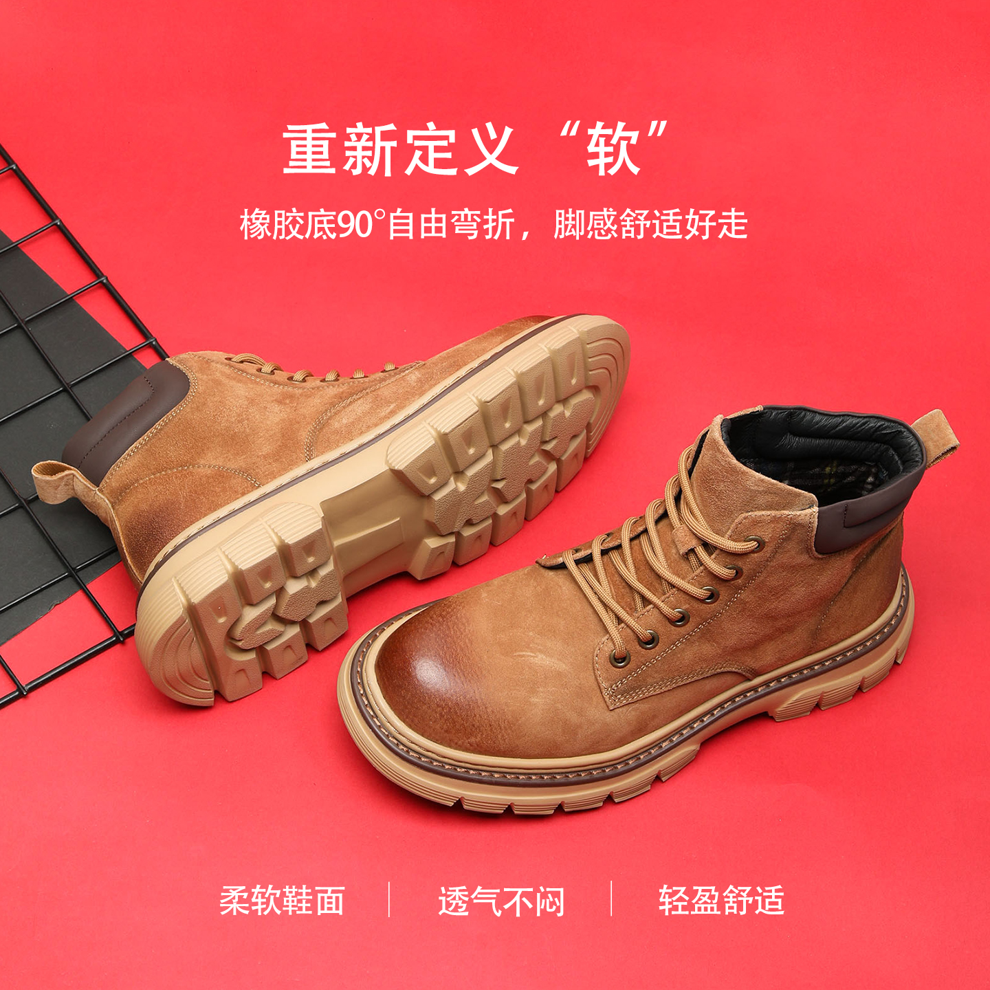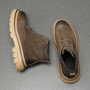 高帮厚底真皮户外工装 秋季 骆驼大黄靴马丁靴男款 靴 王俊凯同款