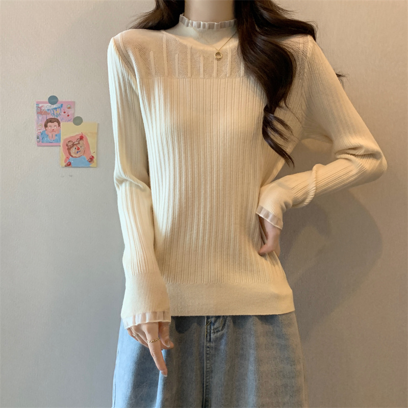 洋气针织上衣宽松内搭大码 胖mm小衫 毛衣 女秋冬2025新款 蕾丝打底衫