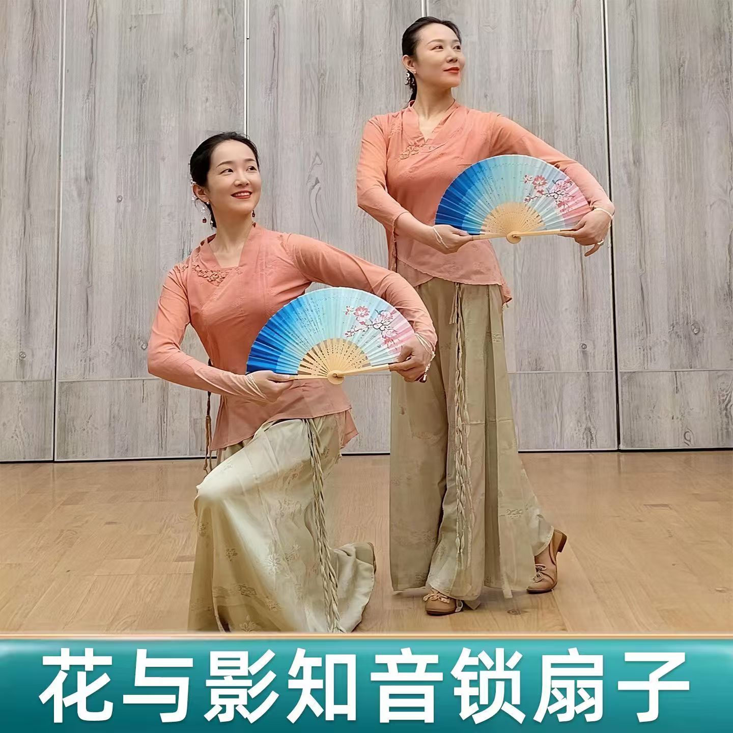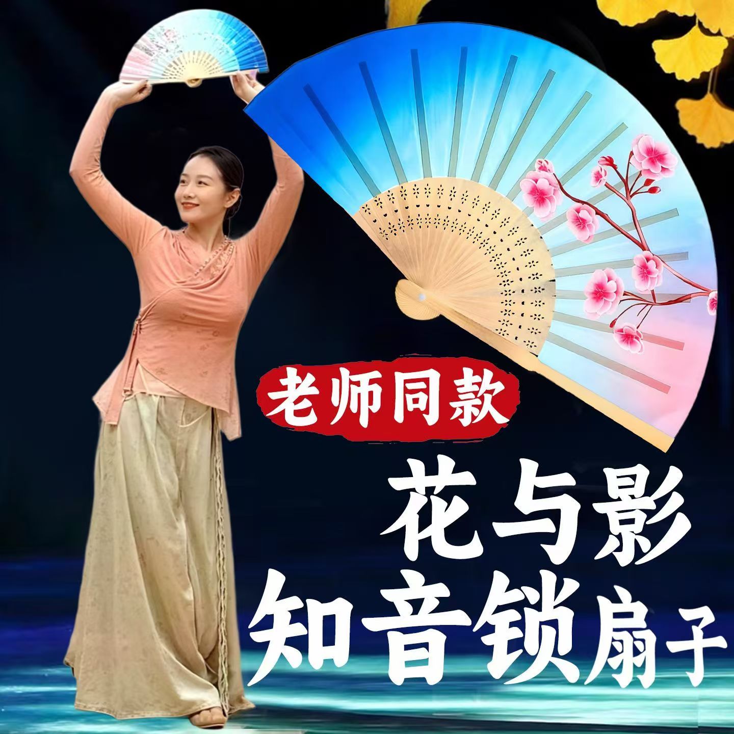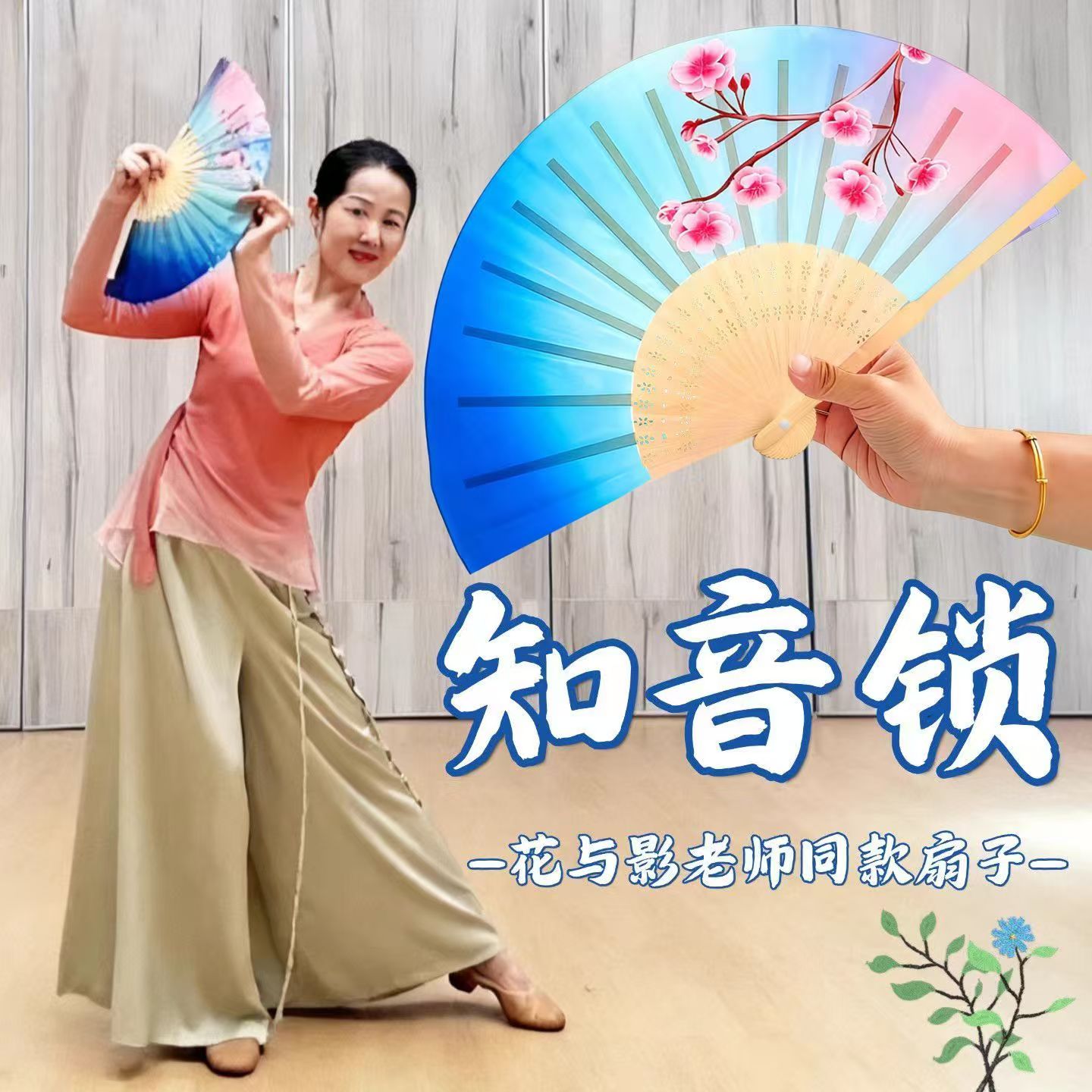 花与影知音锁扇子同款 古典舞扇蓝色渐变手绘染色跳舞表演出道具折