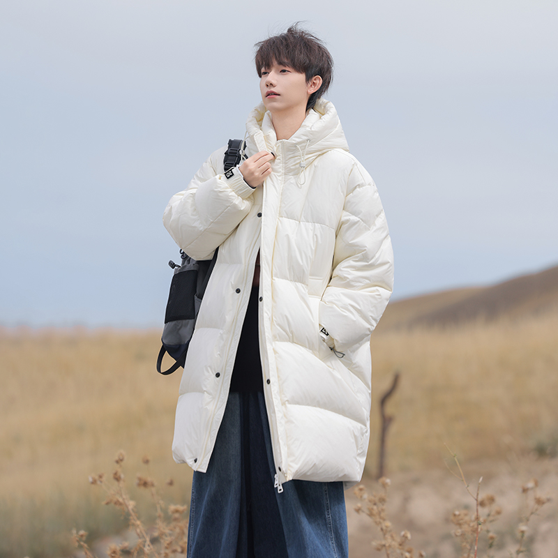 韩国大口袋连帽长款 宽松百搭加厚白鸭绒外套 羽绒服女冬2025年新款