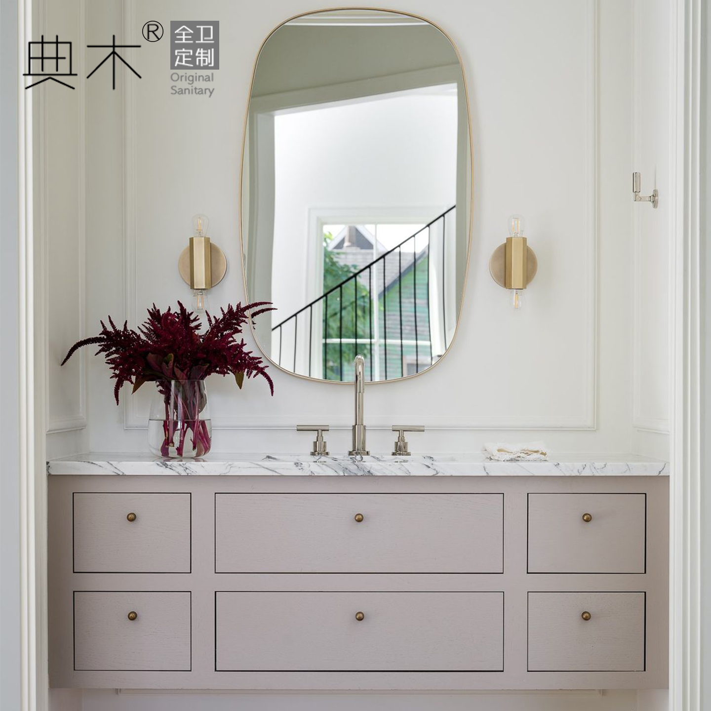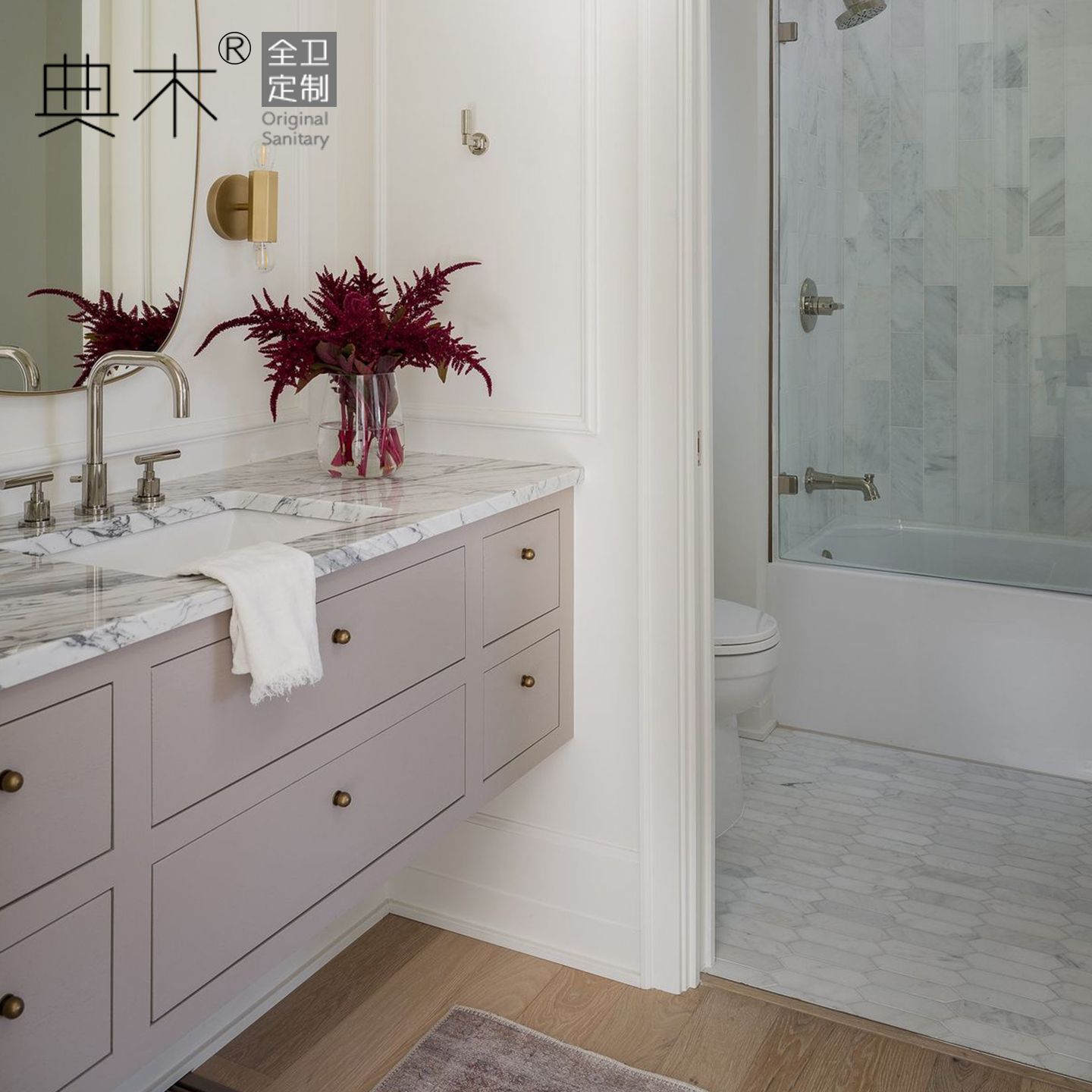 美式 复古卫生间大理石橡木卫浴柜定制 卫生间洗漱台一体盆上门安装