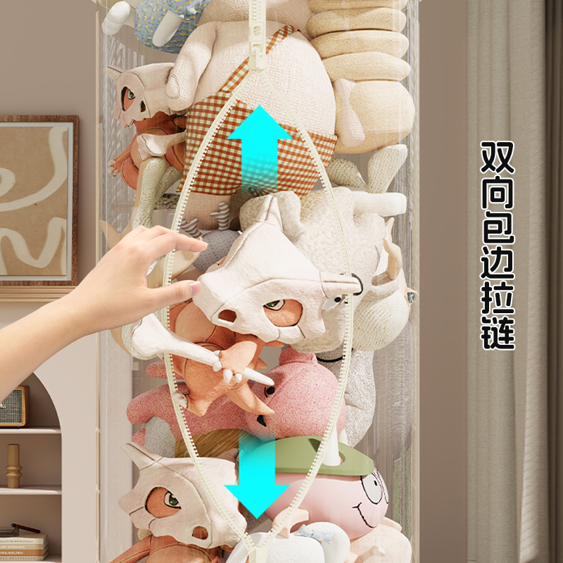 毛绒娃娃收纳桶透明拉链款 玩偶整理箱神器儿童放玩具公仔储物筐 装
