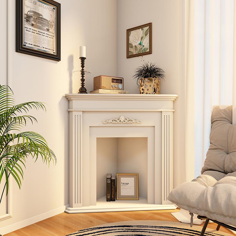 法式 饰柜客厅入户玄关展示柜北欧白色简约置物架 仿真壁炉直播间装