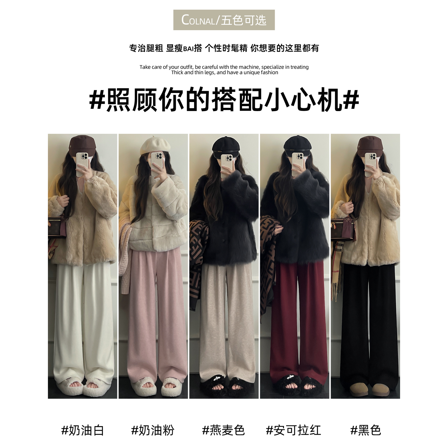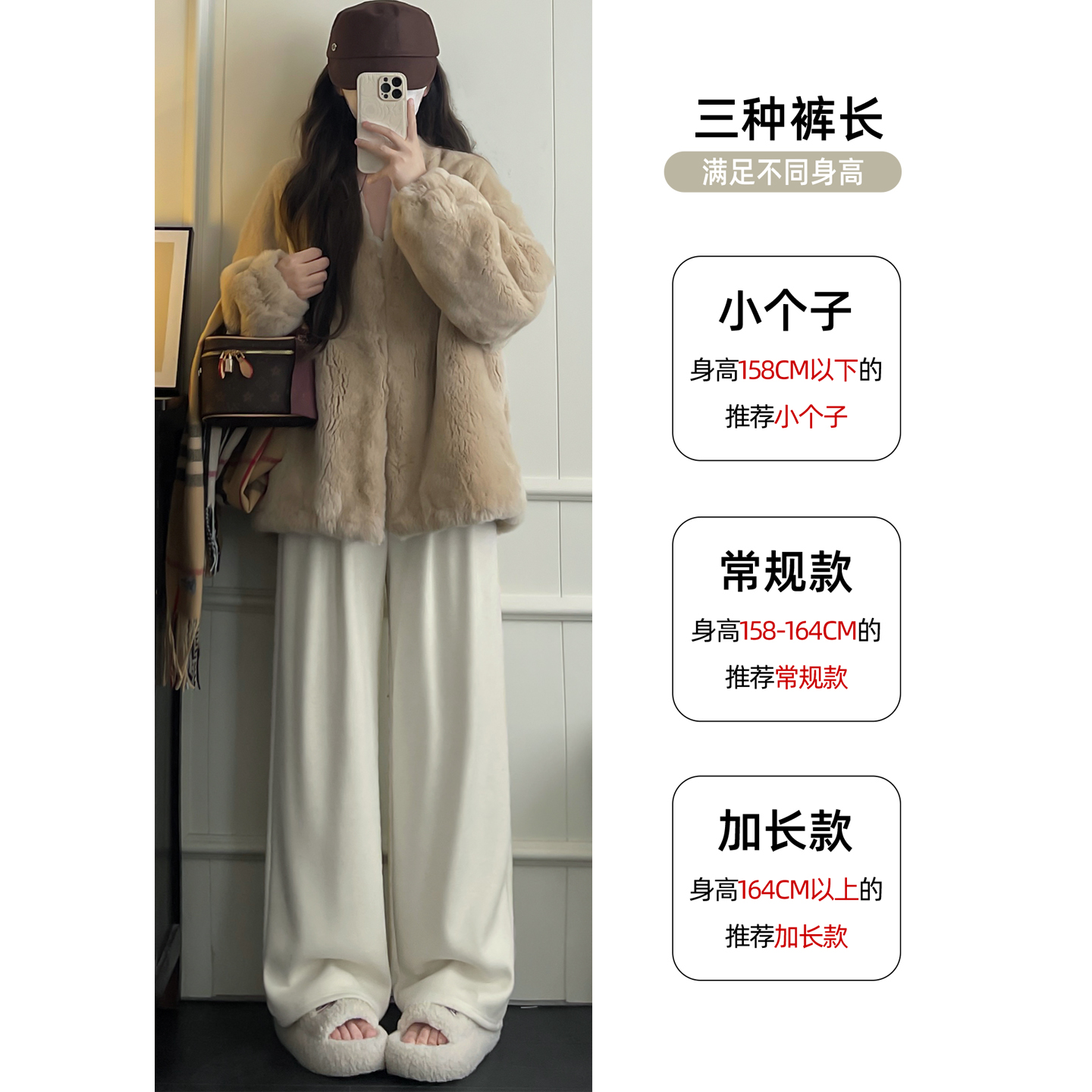 秋冬加绒垂感仿羊绒阔腿裤 秋慵懒感糯米裤 子女2025新款 直筒白色裤
