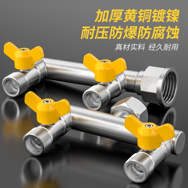 天然气三通球阀全铜4分活接f型加宽一进二出带开关m30天燃气阀门