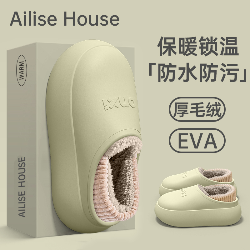 包跟棉拖鞋 外穿保暖雪地靴防滑厚底居家情侣毛毛绒家用男 女秋冬季
