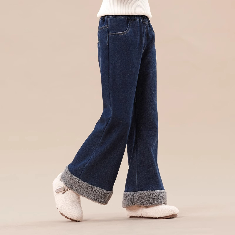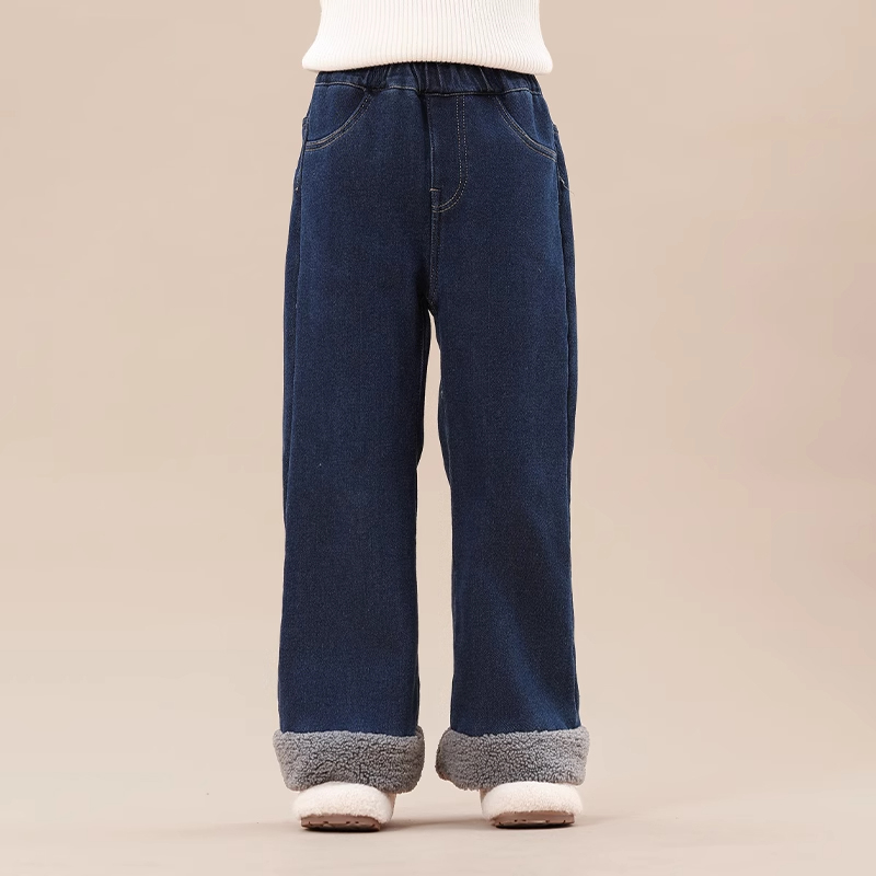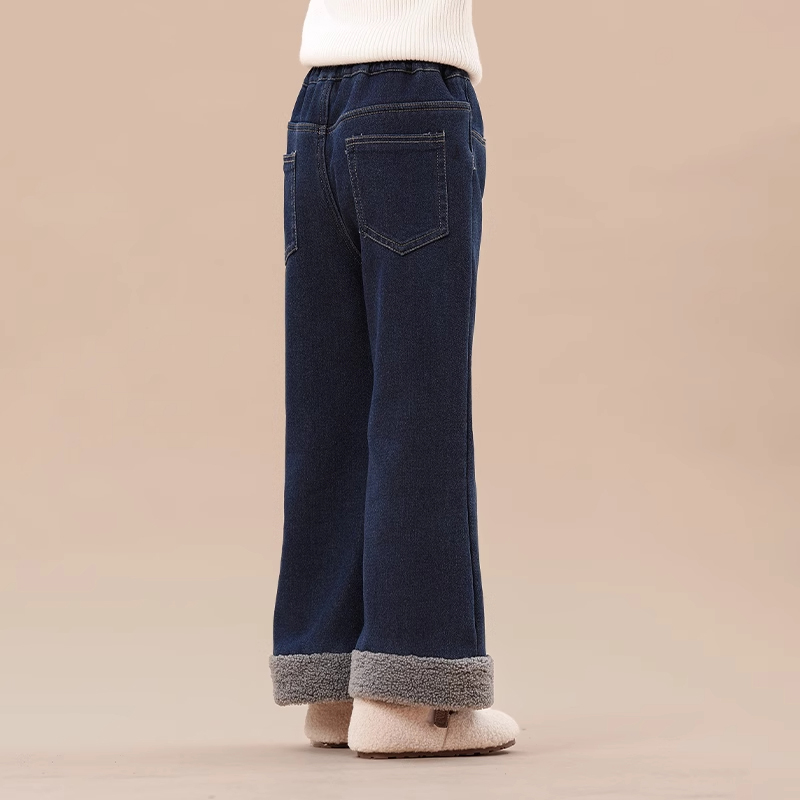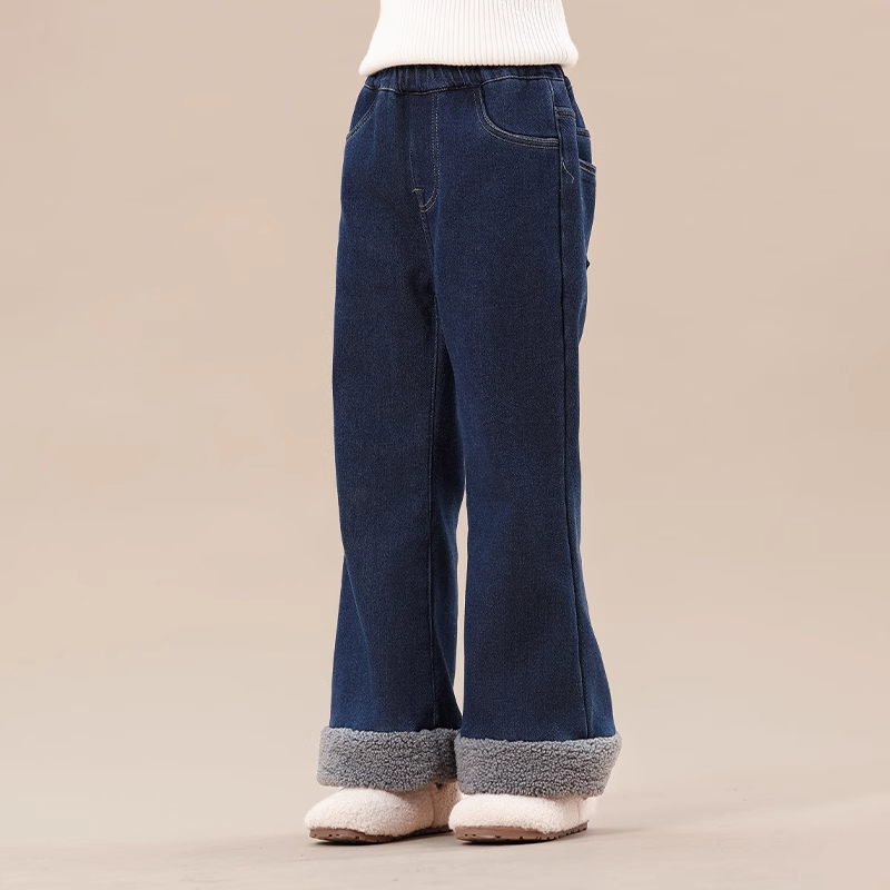 大童裤 左西女童加绒牛仔裤 春秋2025新款 儿童弯刀裤 子 防褪色秋冬款