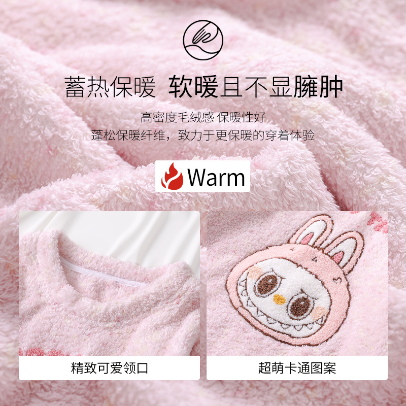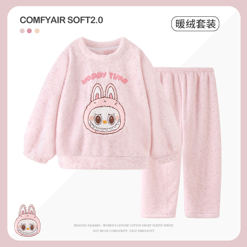女孩套装 半边绒睡衣女童拉布布衣服2025新款 珊瑚绒儿童家居服冬装