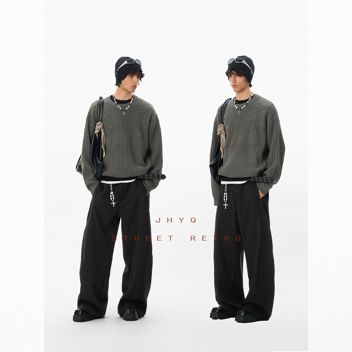 百搭外穿拉链线衣外套 慵懒风潮牌宽松针织衫 立领开衫 毛衣男秋冬季