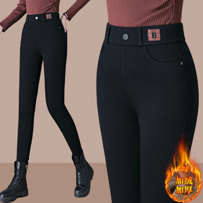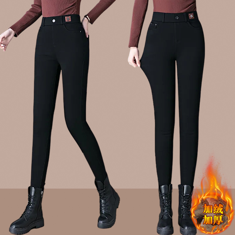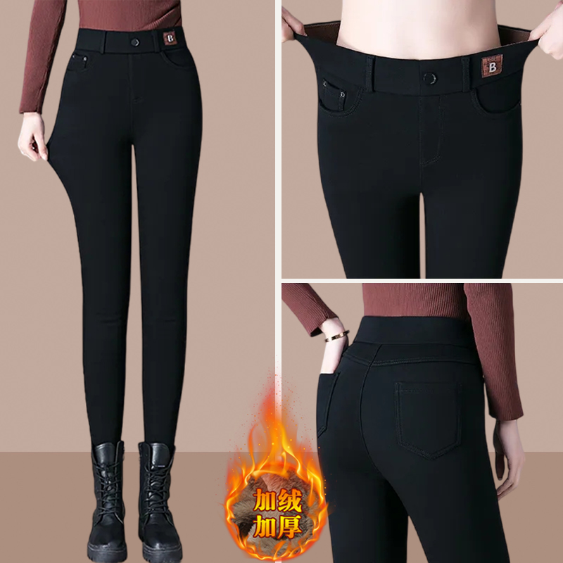 显瘦百搭铅笔裤 大码 新款 女加绒加厚高腰弹力冬季 子 黑色休闲小脚裤