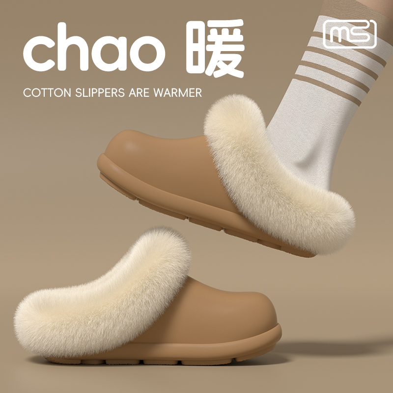 奈货两穿可拆卸棉拖鞋 男女居家户外两穿加绒防滑保暖加厚毛拖