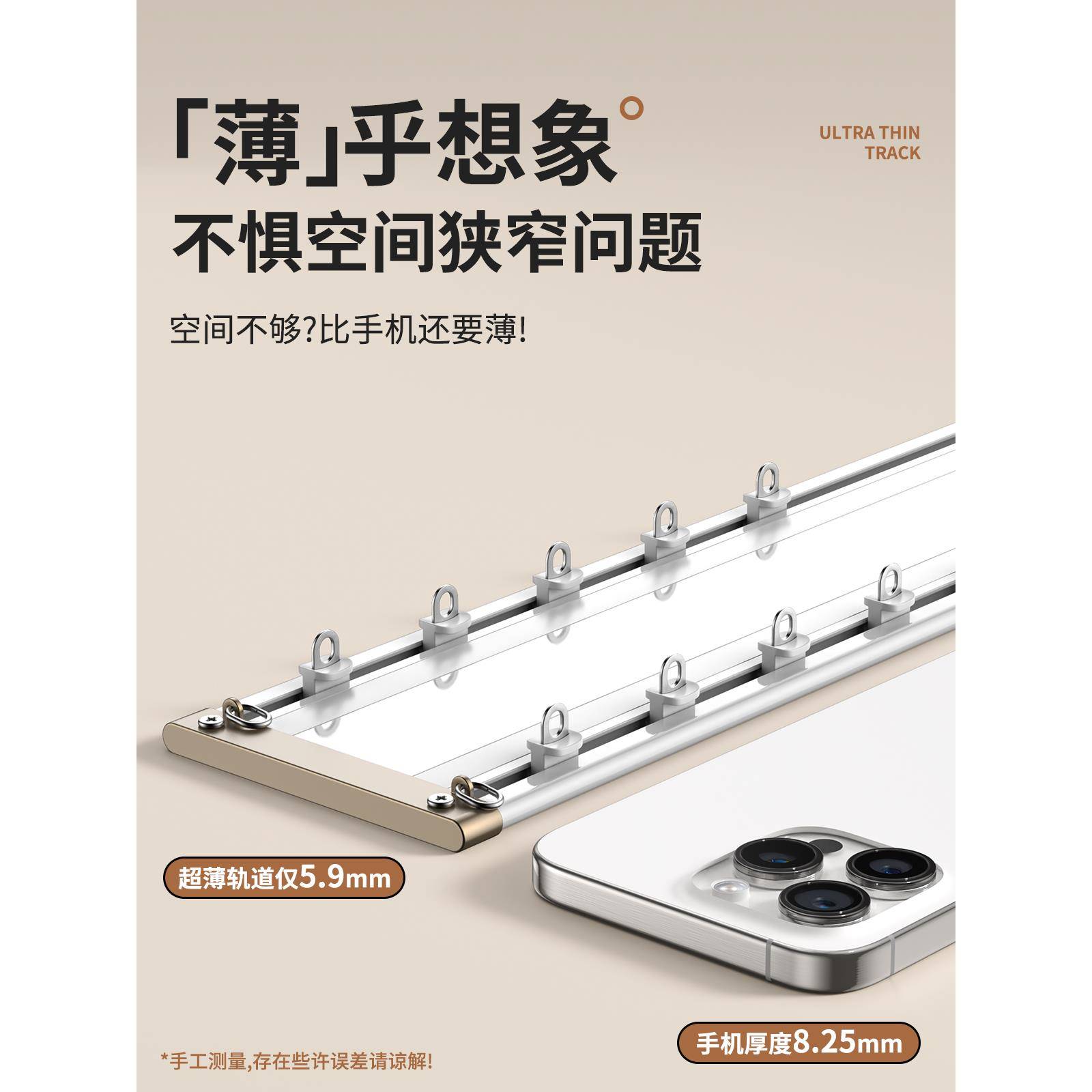 超薄窗帘轨道内开窗轨道顶装 窗帘杆导轨滑轮挂钩滑道双轨滑轨 侧装