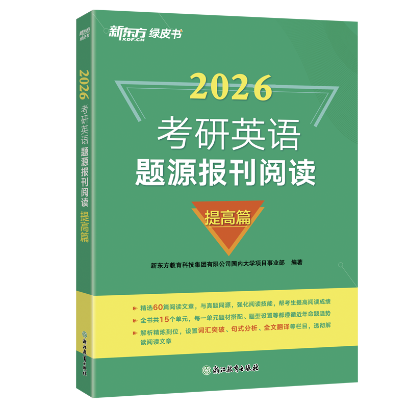 考研英语题源报刊阅读 提高篇新东方教育科技集团有限公司国内大学项目事业部浙江教育 新 图书新东方 考研 教辅 正版 教材