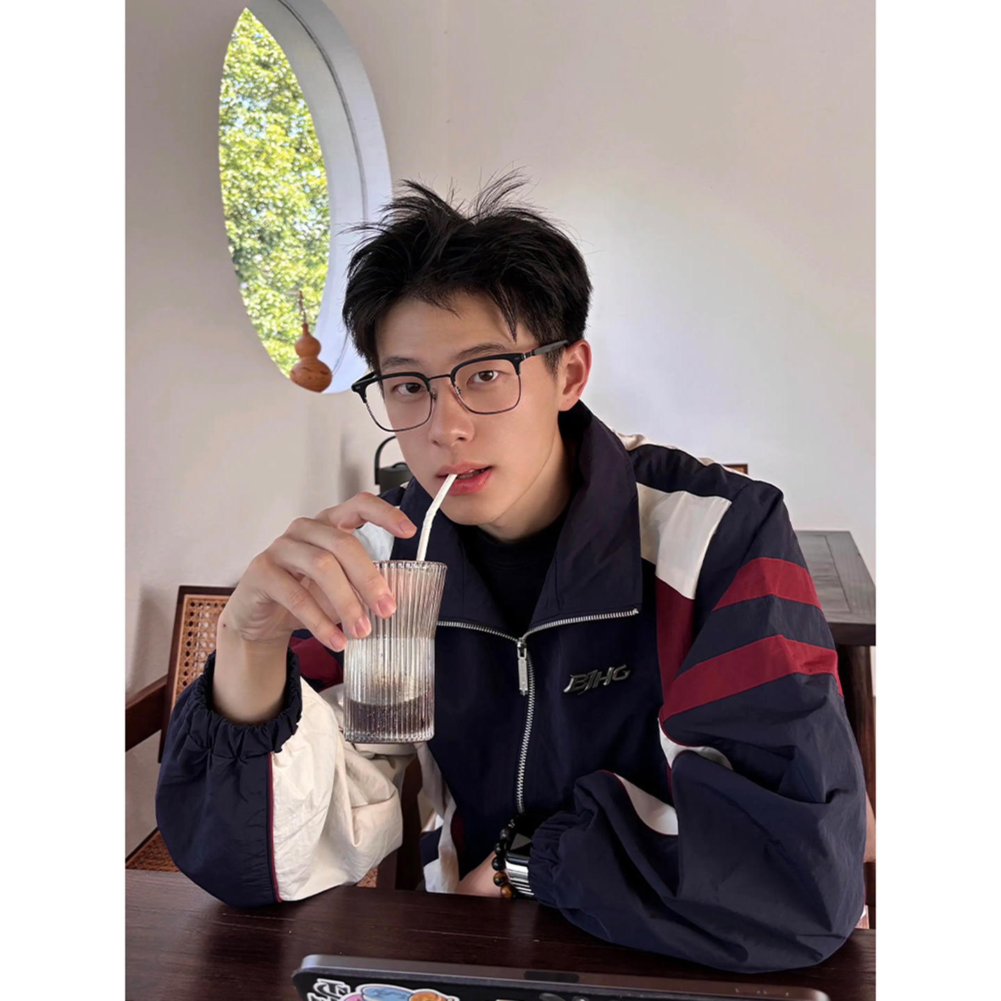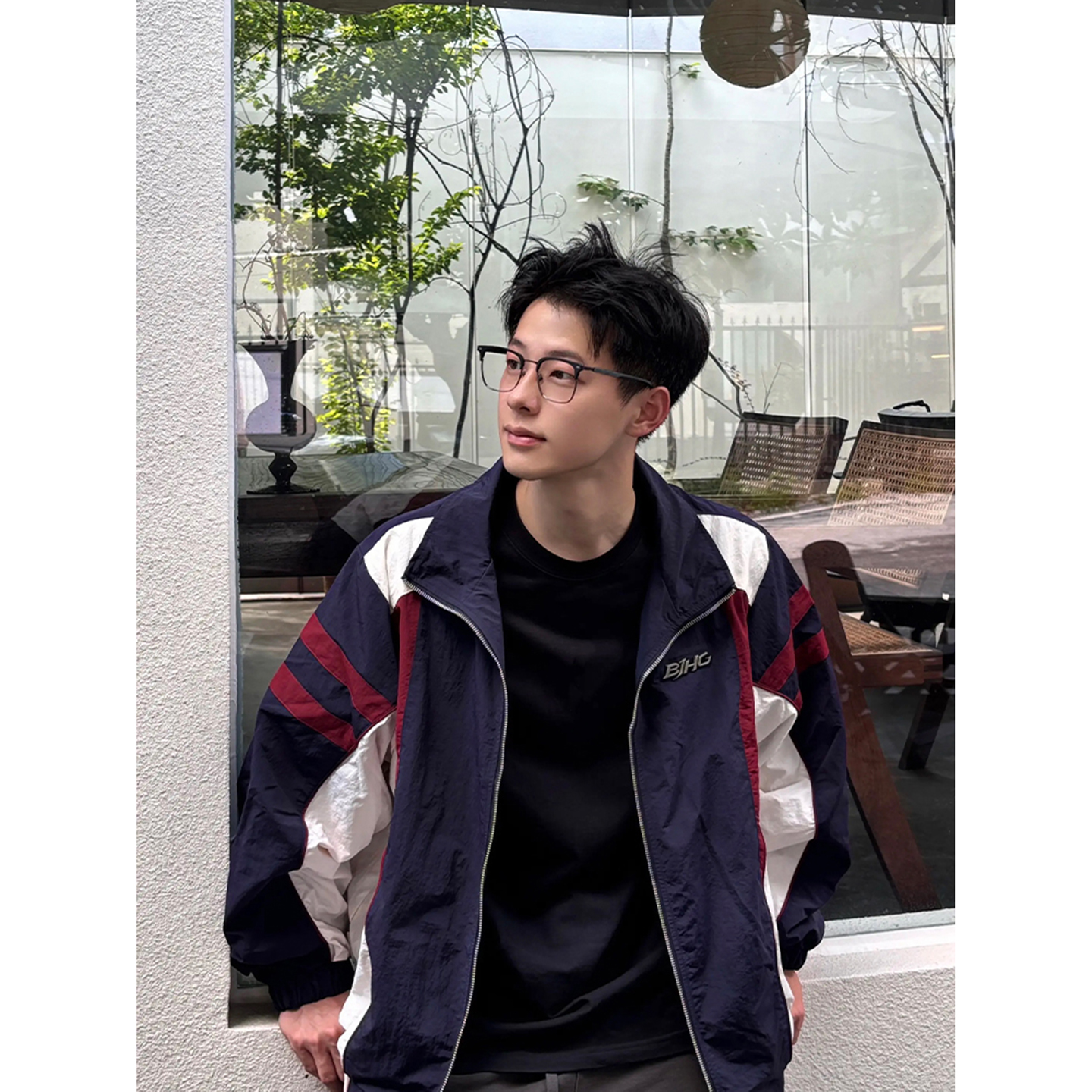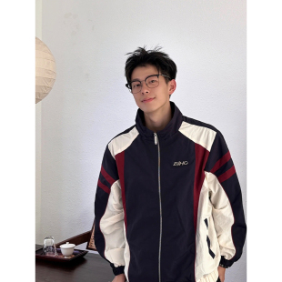 潮流刺绣撞色夹克美式 宽松秋季 复古 森马外套女连帽插肩袖 超值购