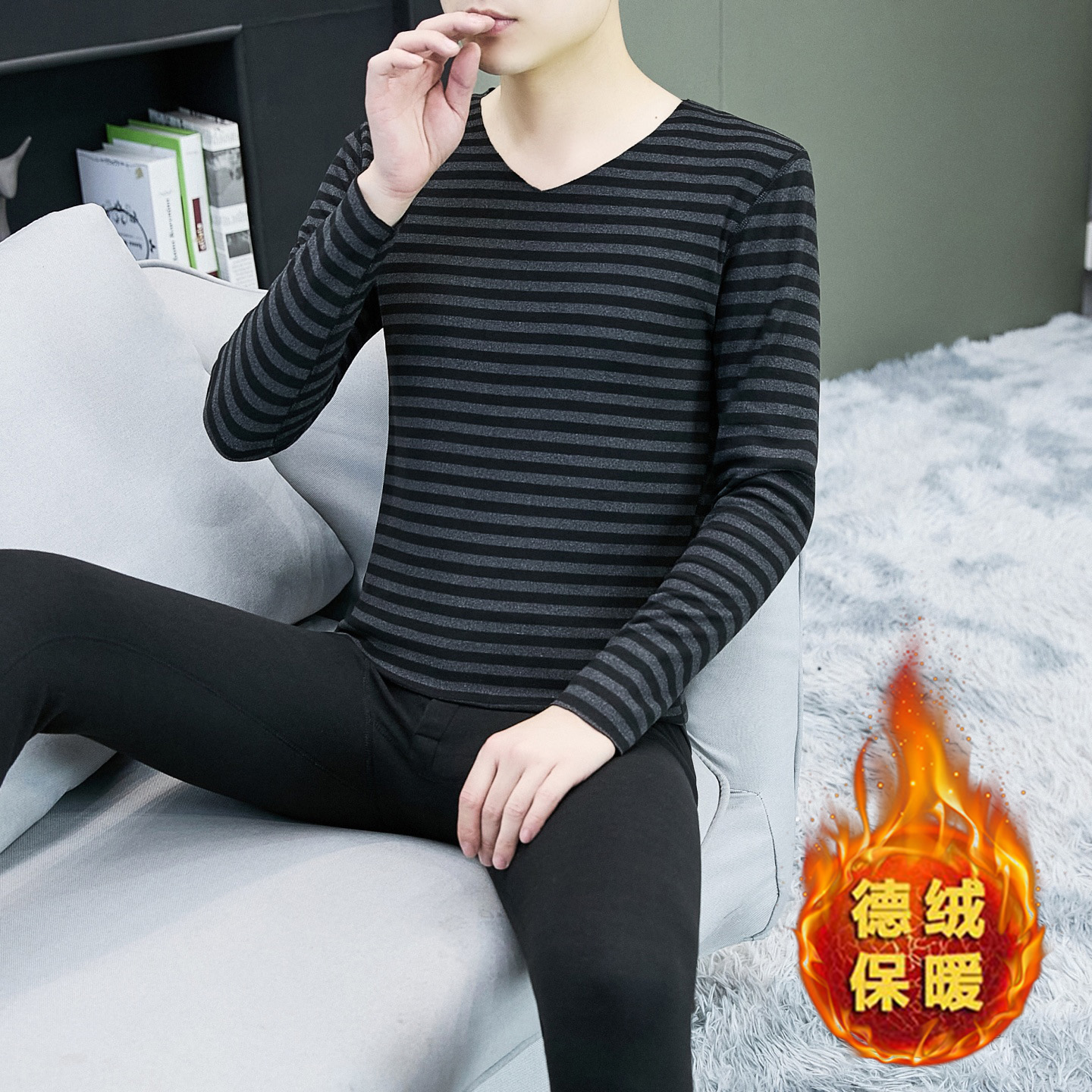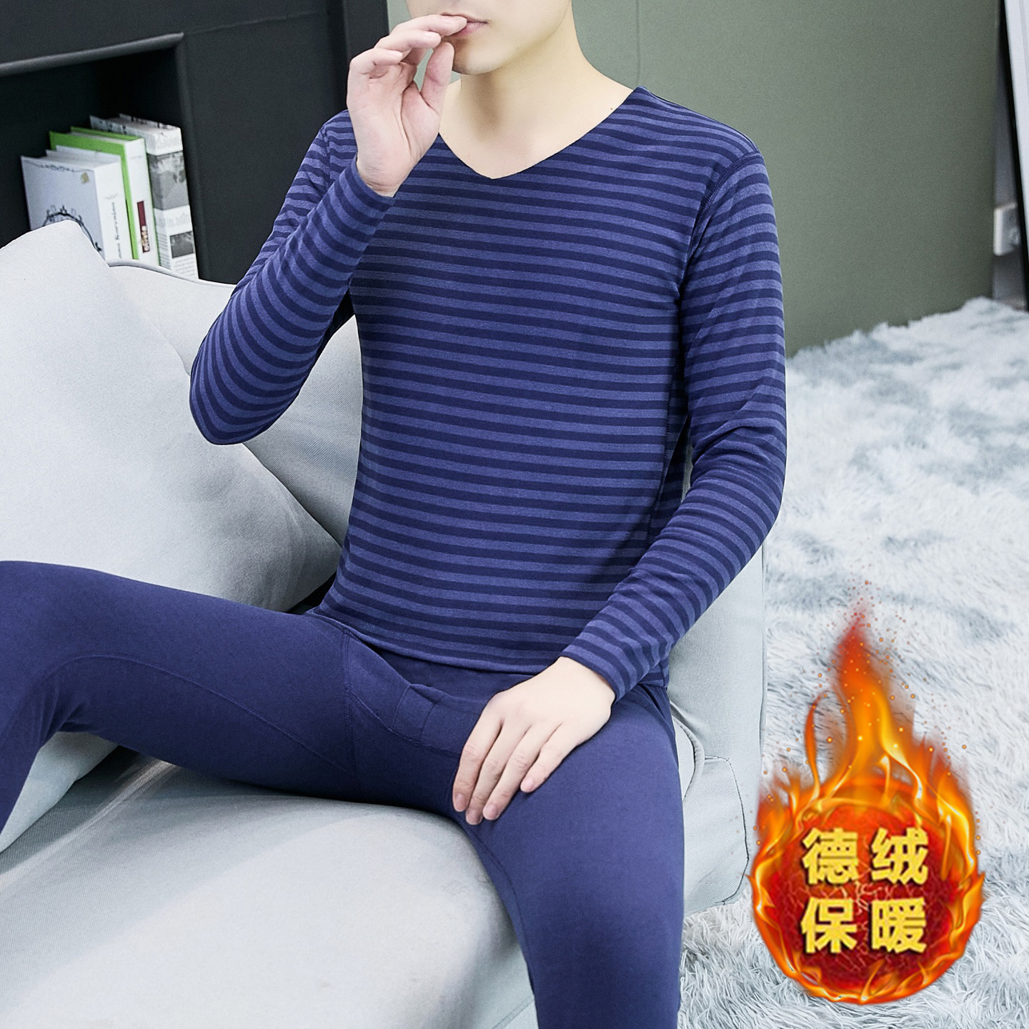 一套衣服德绒无痕秋衣秋裤 德绒保暖内衣男套装 长袖 新款 2025秋冬季