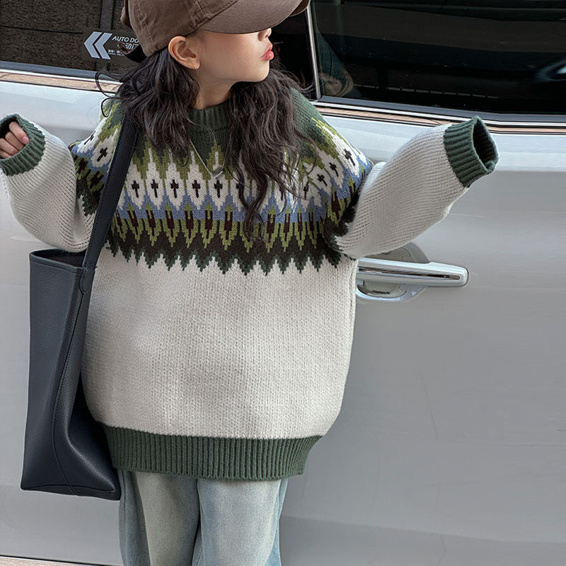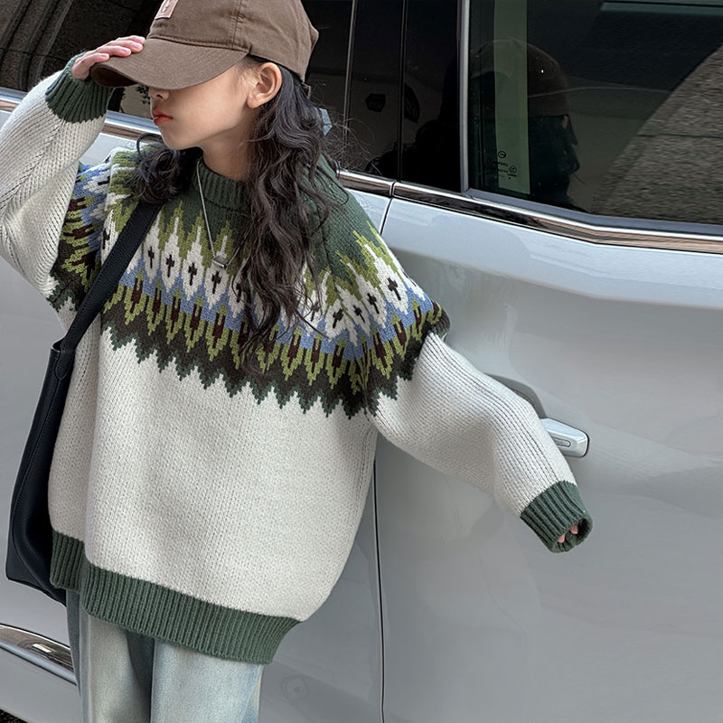 潮 中大童洋气时髦保暖套头打底衫 女童加厚毛衣针织衫 2025秋冬新款