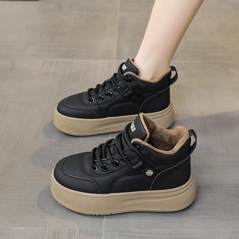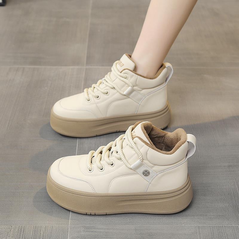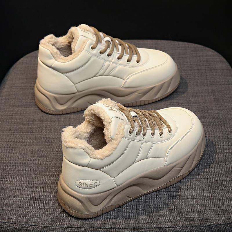 板鞋 加绒保暖厚底松糕鞋 1011h 女2025新款 秋冬加厚高帮小白鞋