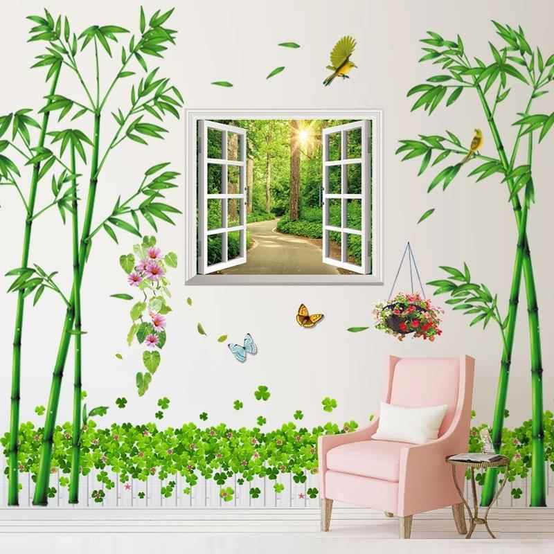 卧室墙纸自粘风景画墙上装 饰3D立体墙贴纸贴画客厅电视背景墙竹子