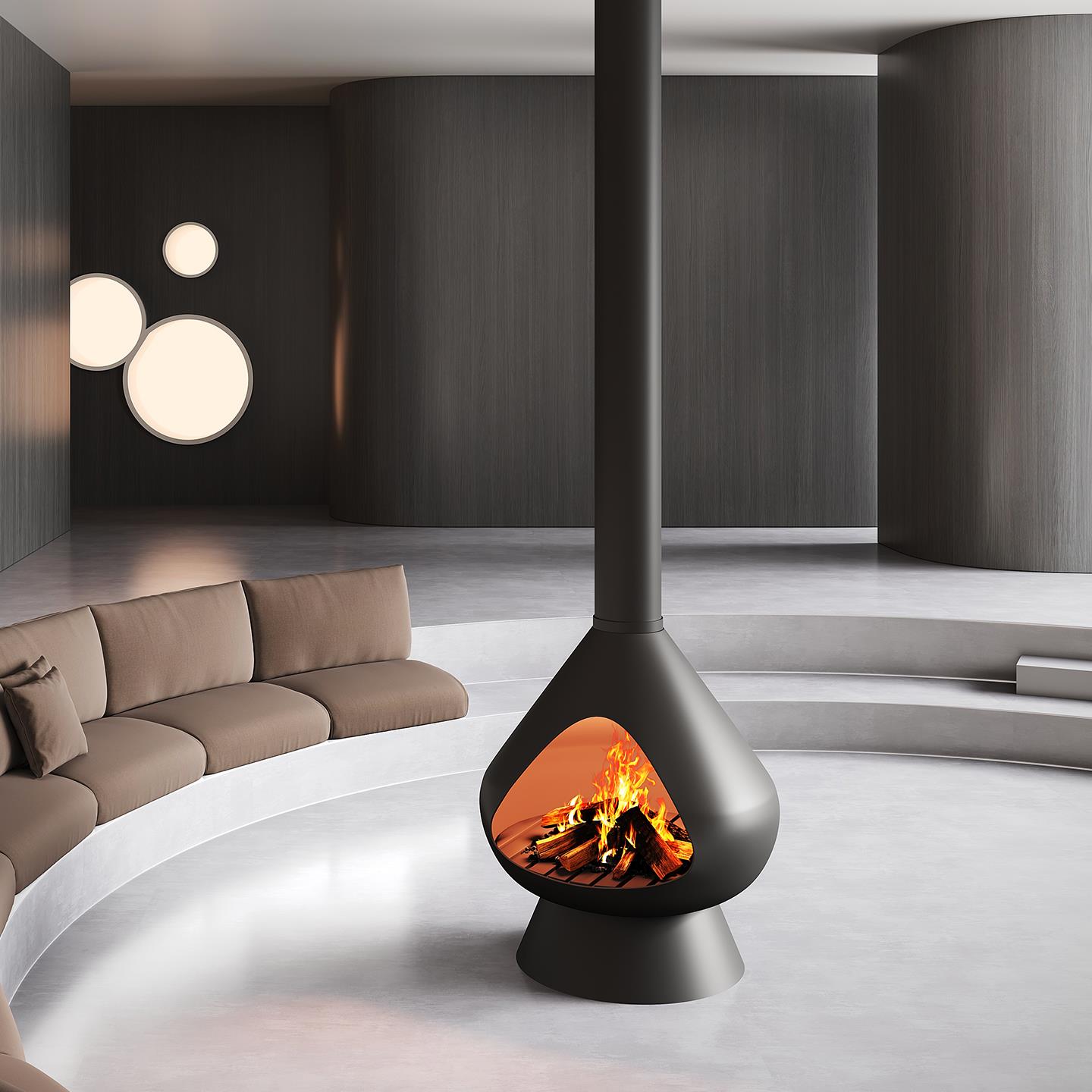 高端定制悬挂式 真火壁炉燃木柴吊挂圆形壁炉农村家用明火壁炉无烟