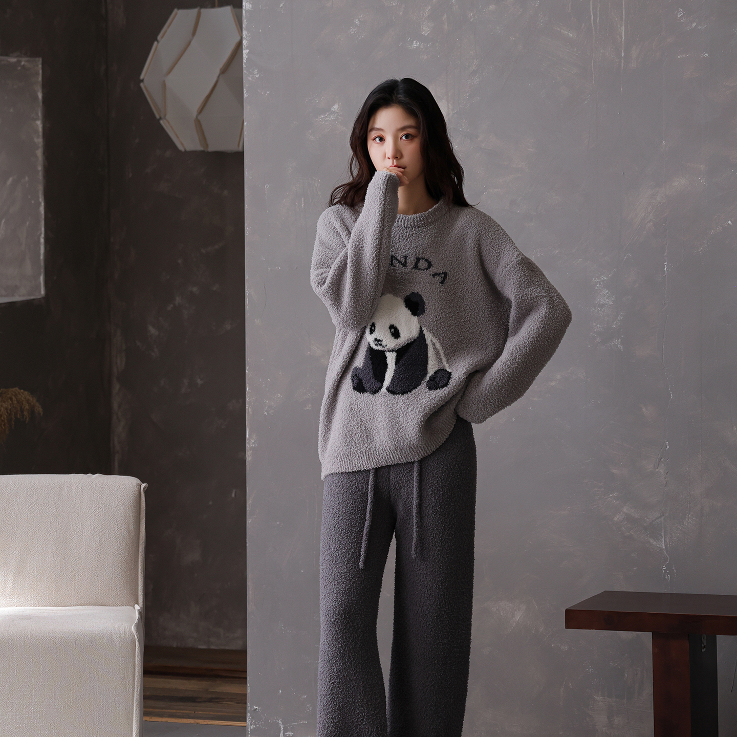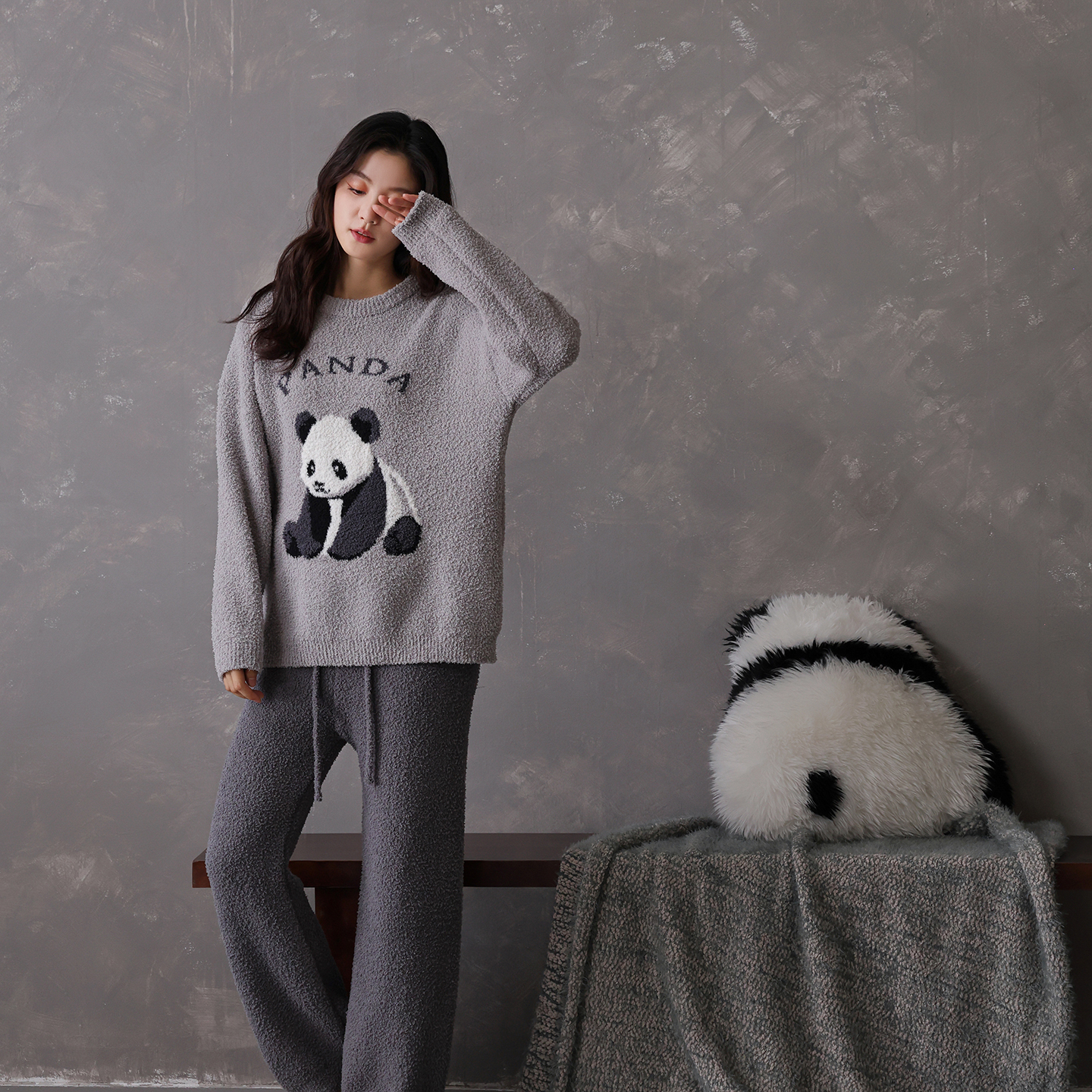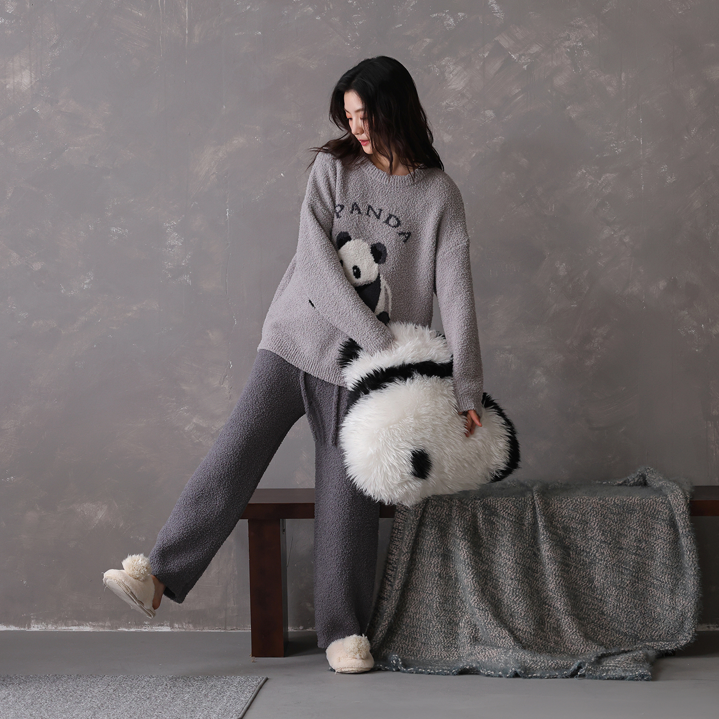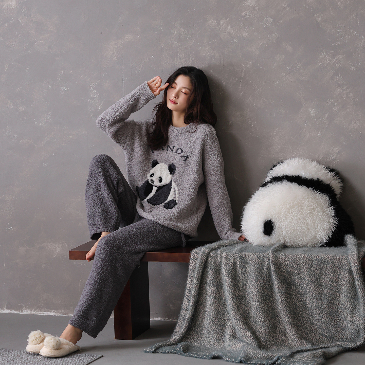 樱伴睡衣秋冬半边绒保暖可外穿舒适宽松熊猫可爱休闲加厚可外穿