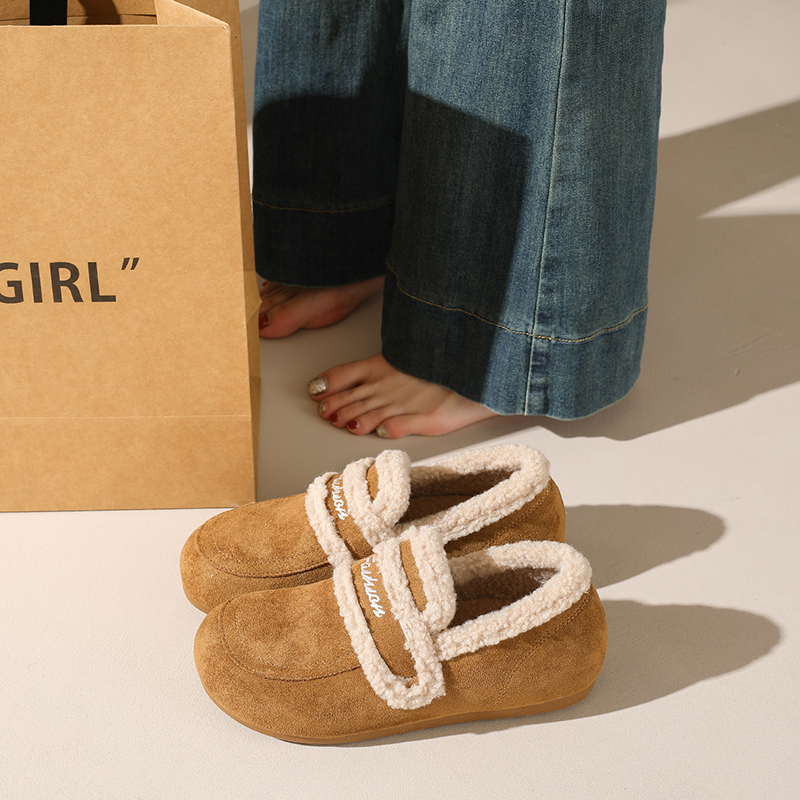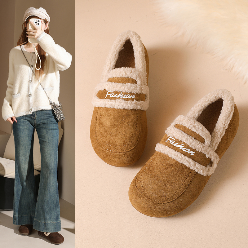 一脚蹬保暖棉鞋 加绒雪地靴孕妇平底豆豆鞋 女外穿2025秋冬季 毛毛鞋