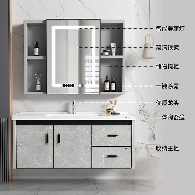 卫生间洗手盆柜组合铝合金浴室柜陶瓷一体盆洗手台面卫浴柜洗漱台