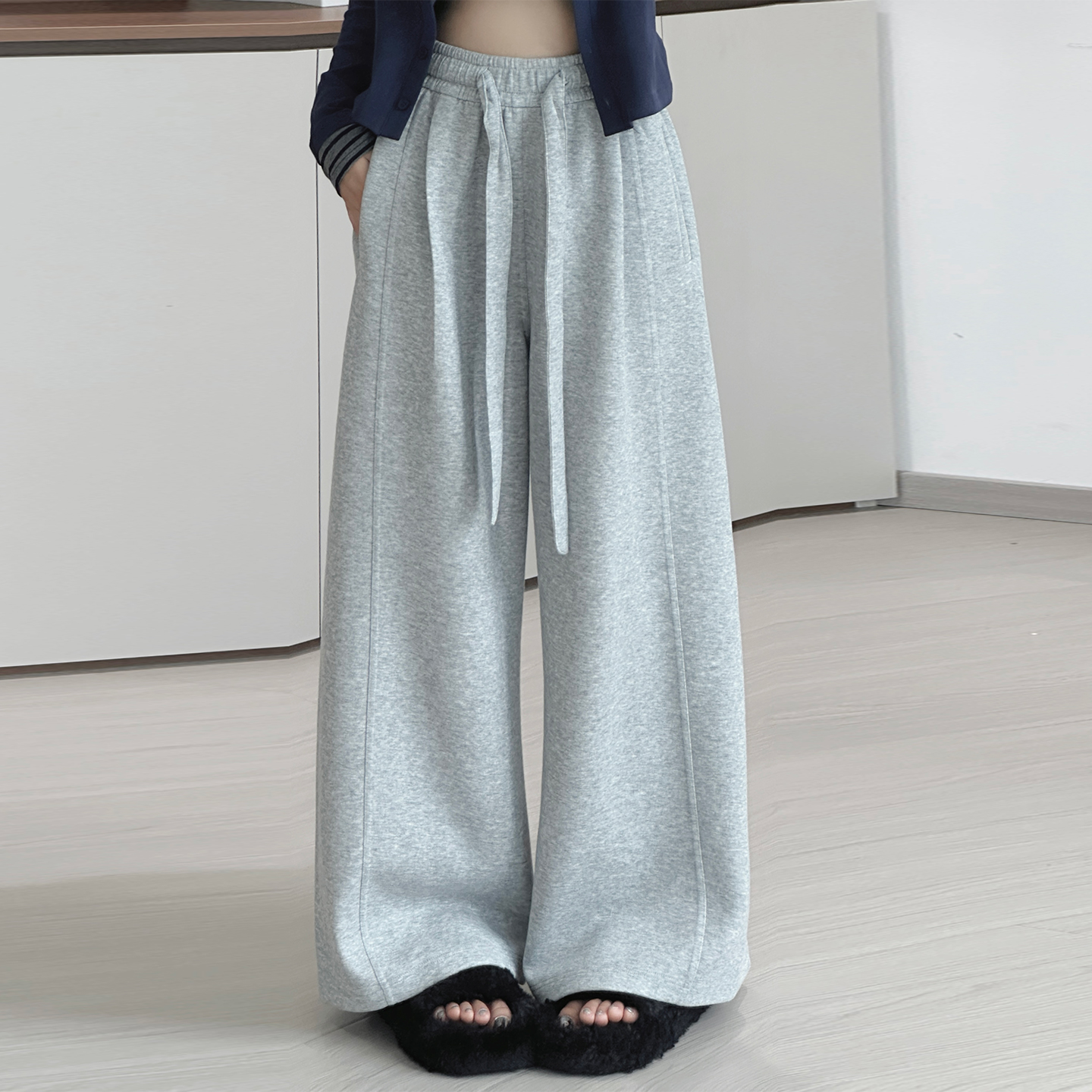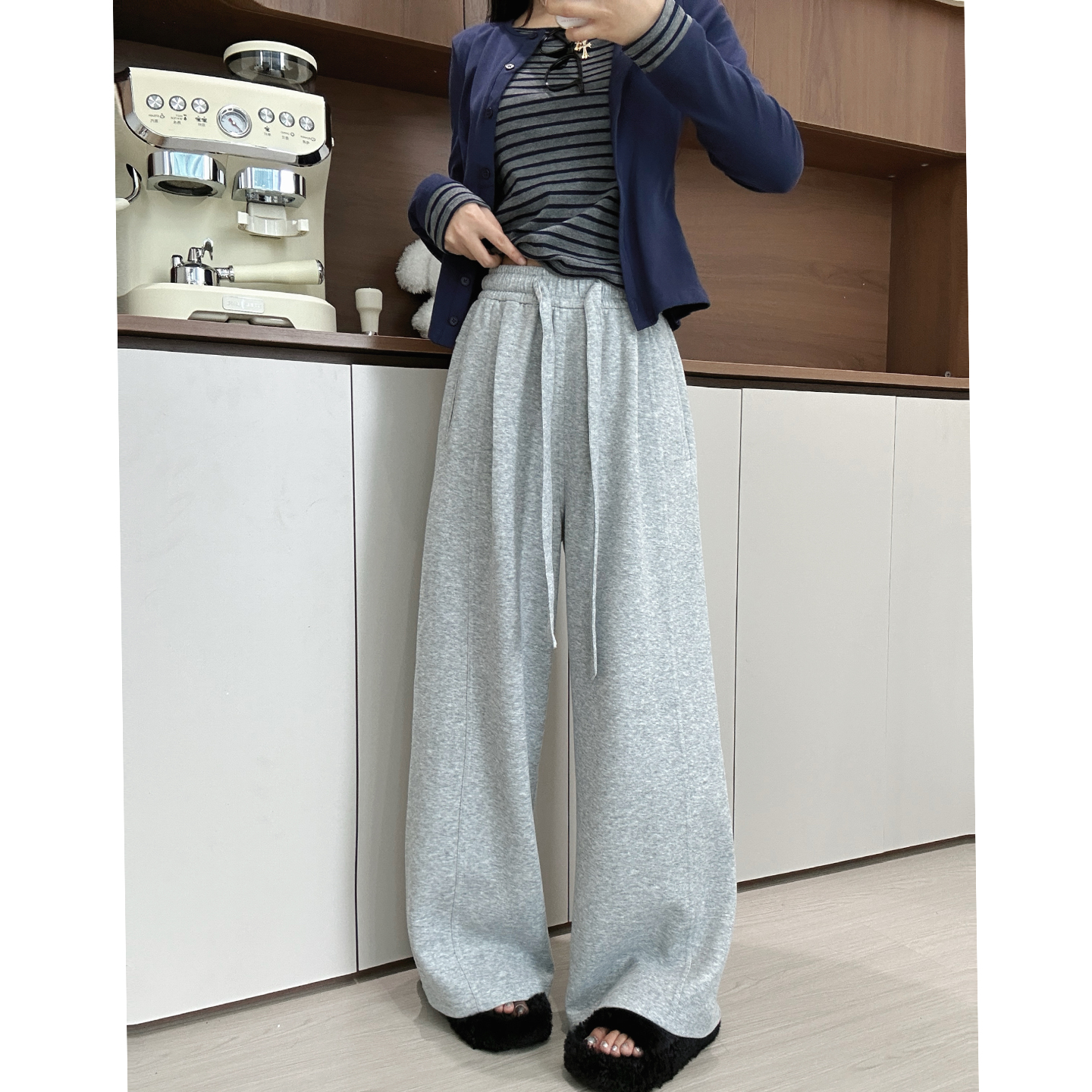 高级宽松bf慵懒垂感直筒加绒休闲阔腿裤 2025新款 子女春秋季 糯米裤
