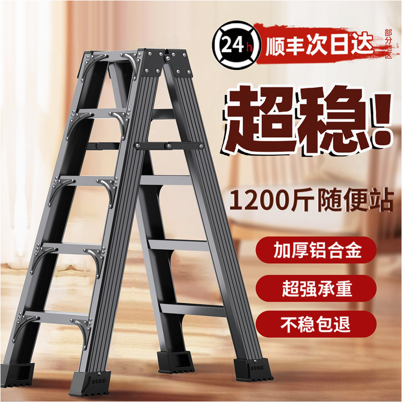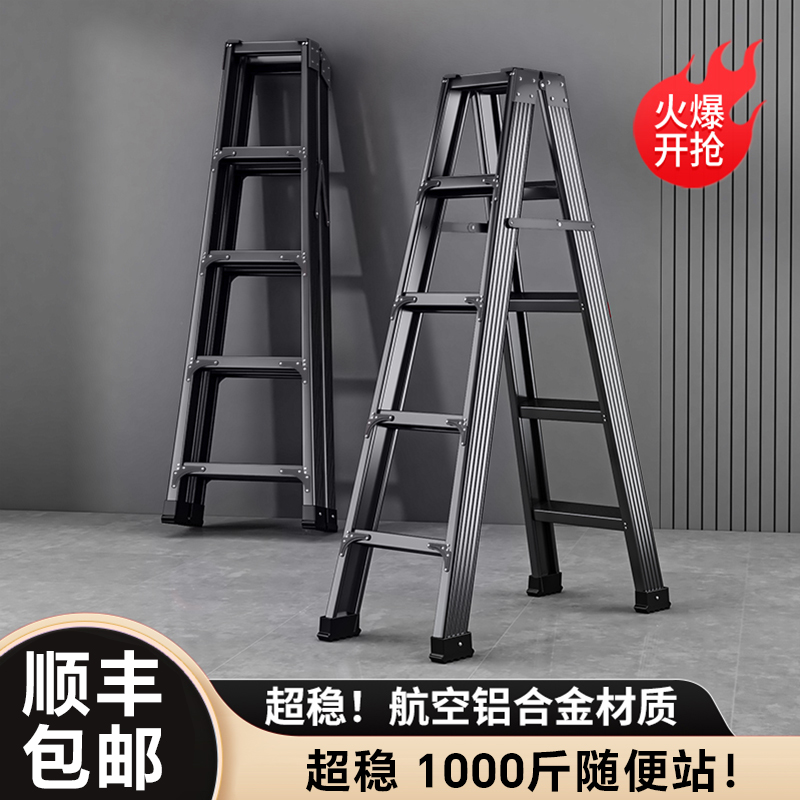 日本铝合金梯子人字梯家用折叠梯加厚加粗多功能楼梯爬梯室内步梯