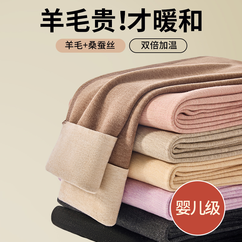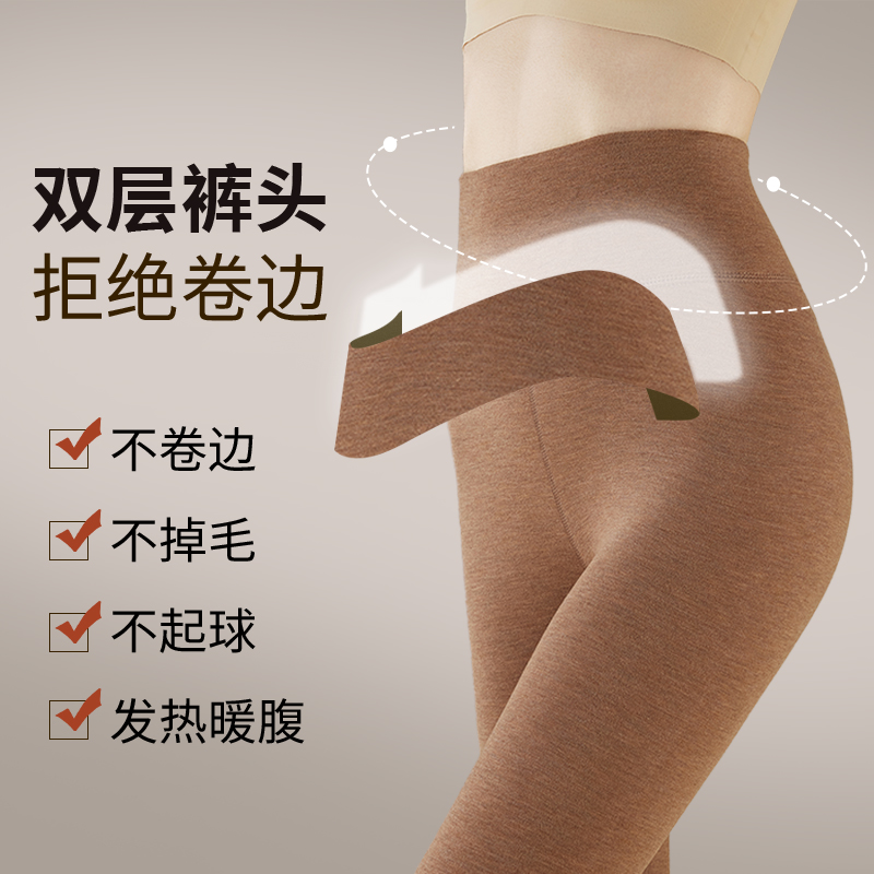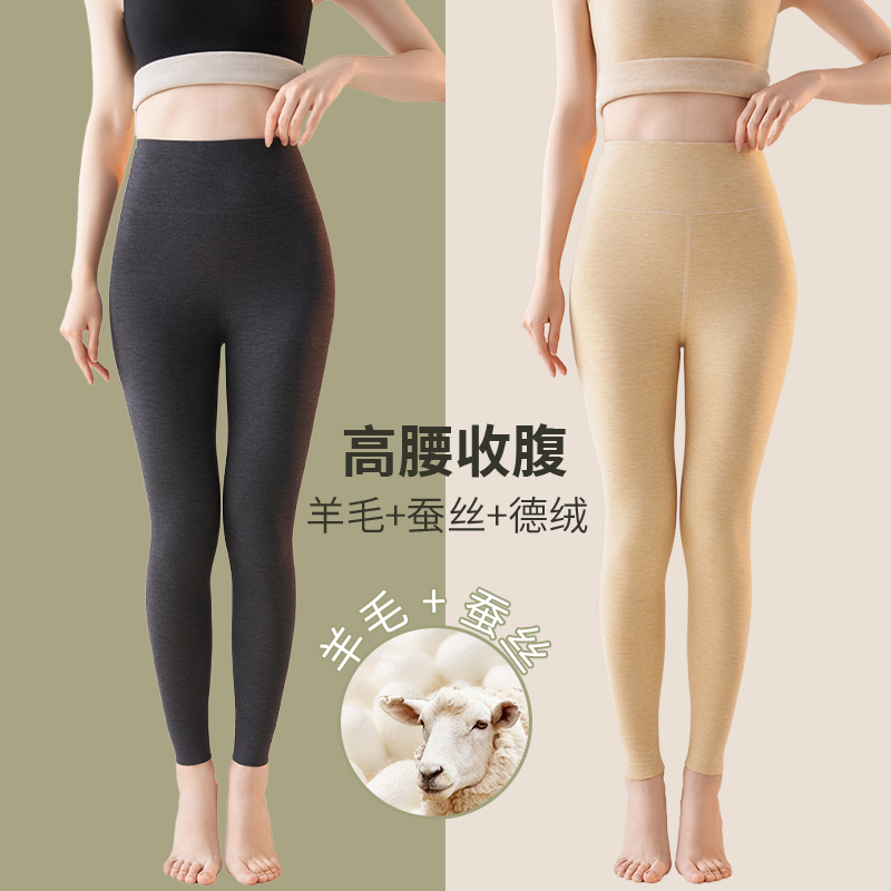 雅鹿高腰保暖裤 女士羊毛蚕丝加绒加厚打底收腹内穿发热冬高弹无痕