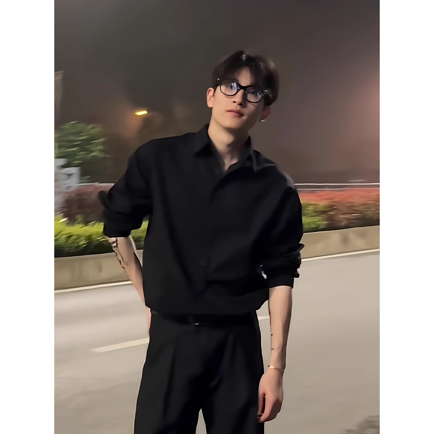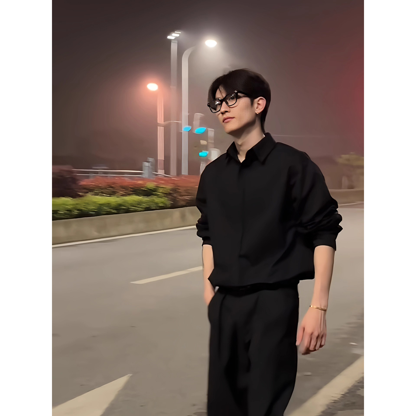 GFX1E900571 24春新品 GXG男装 黑色激光烧花通勤牛仔衬衫