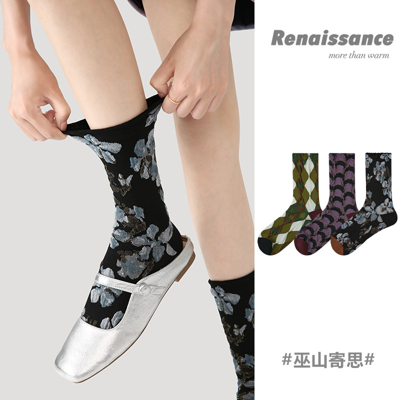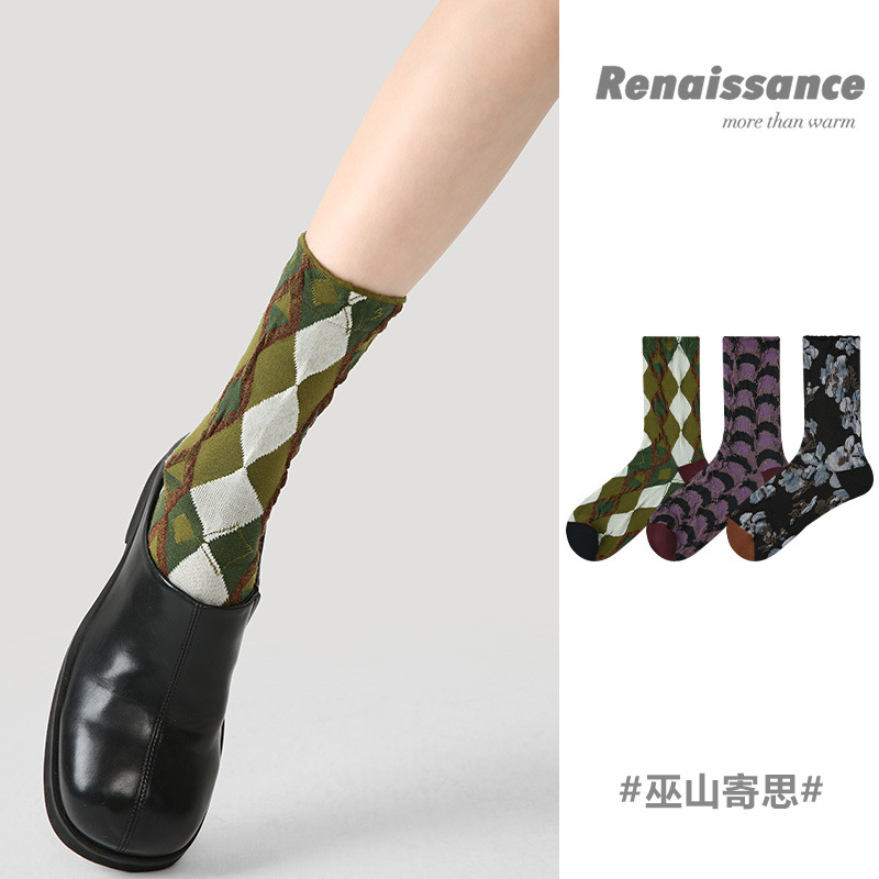 袜子女中筒袜秋冬ins日韩2025新款 拼色美拉德咖色复古色系女长袜