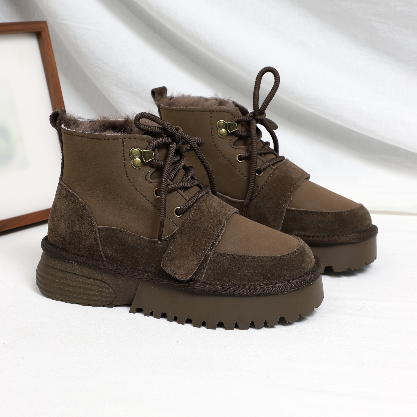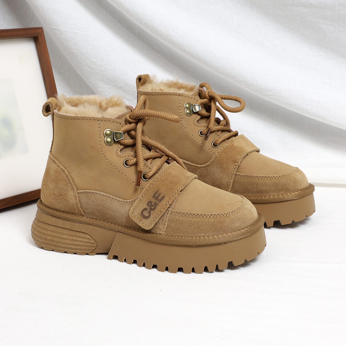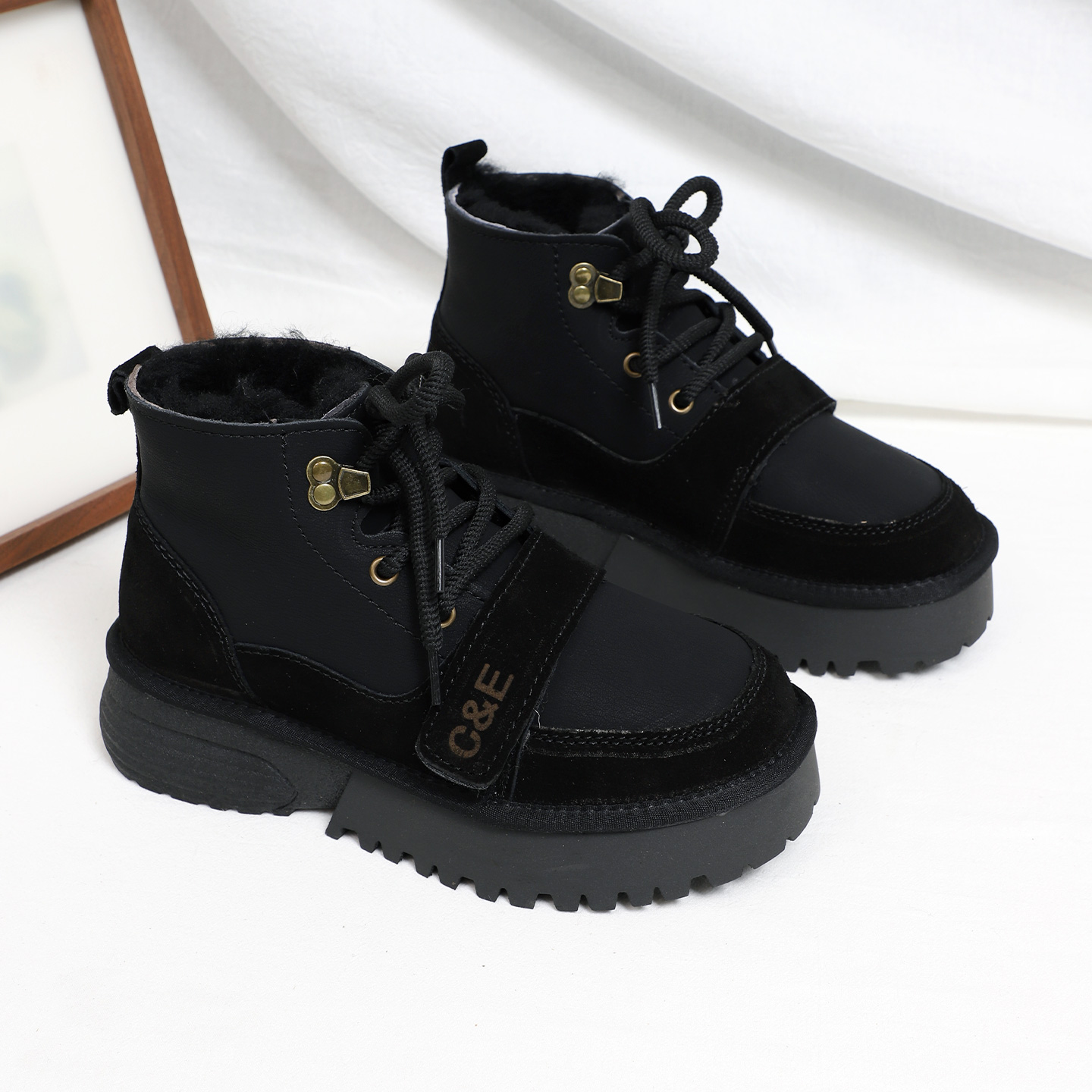 系带真皮毛一体短靴防滑棉鞋 全羊毛加厚保暖雪地靴女2025冬季 新款