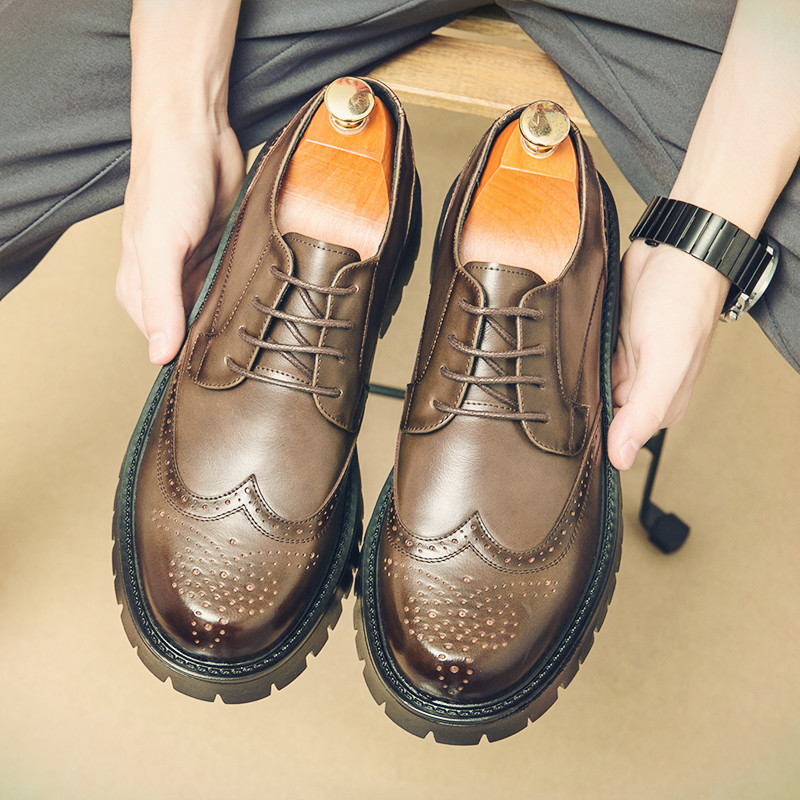 男款 通勤马丁靴厚底增高休闲皮鞋 圆头大头鞋 鞋 黑色工装 MRA德比鞋