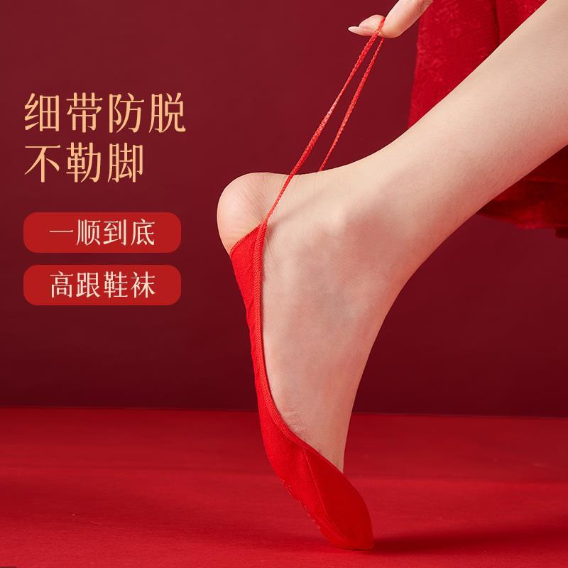 新娘结婚袜子高跟鞋 袜子浅口超隐形吊带船袜本命年红色袜子半掌袜